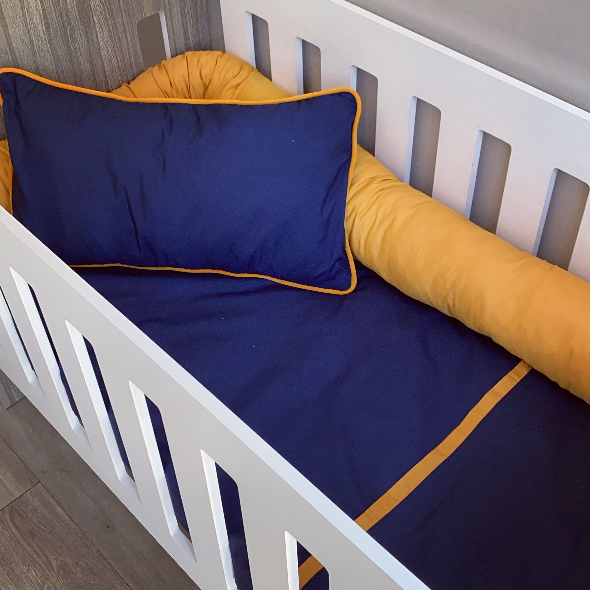 The Standard Set: Standard Duvet Cover & Inner (80 x 110cm) | 2,5m Braided Bumper | Cot Pillow Cover & Inner | Scatter Cover & Inner | Name Pillow Cover & Inner | White Fitted Sheet