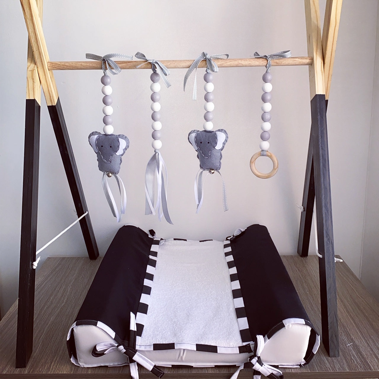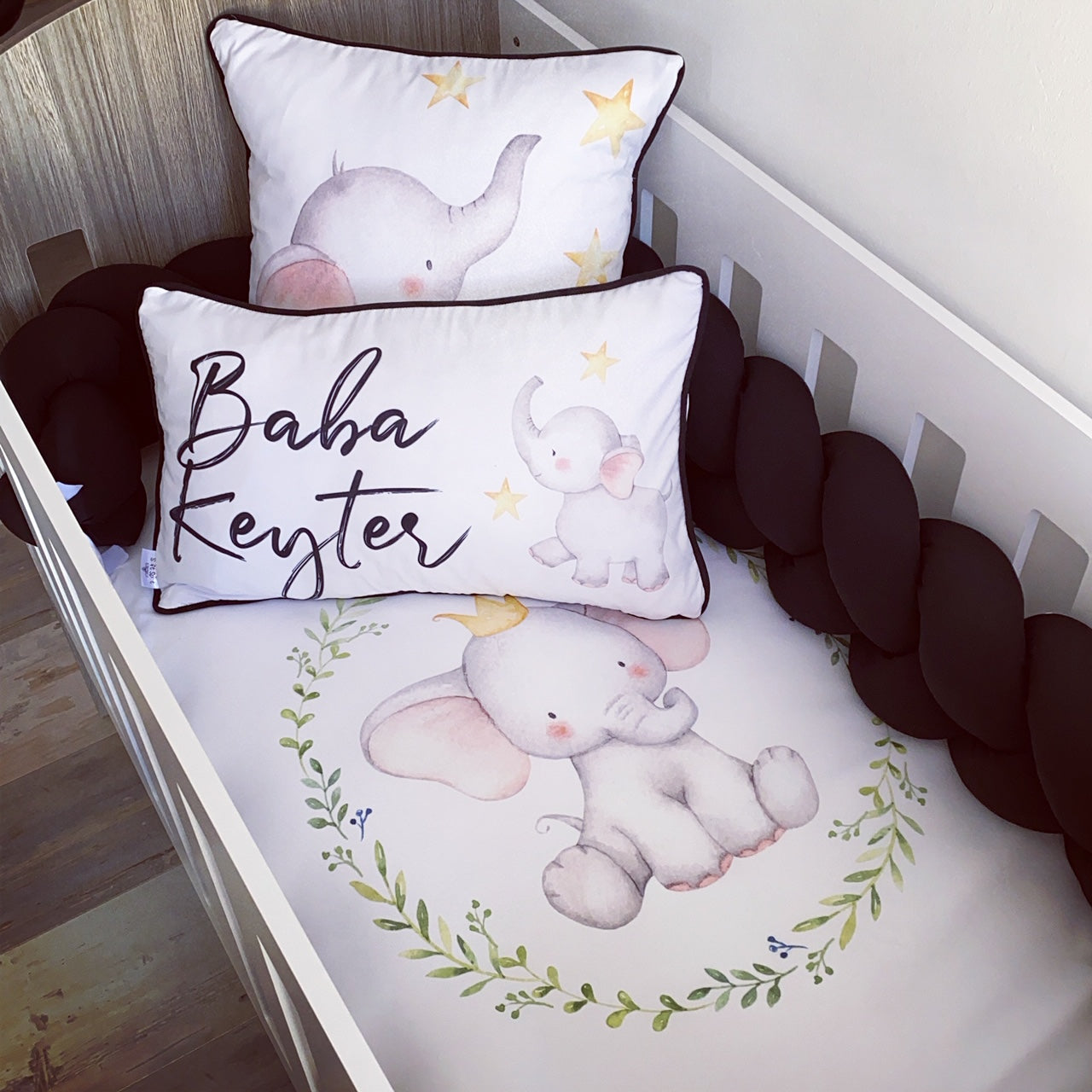 The Nursery Set: Standard Duvet Cover & Inner (80 x 110cm) | 2,5m Braided Bumper | Cot Pillow Cover & Inner | Scatter Cover & Inner | Name Pillow Cover & Inner | Change Mat Cover & Inner | Steel Frame or Wooden Frame | Set of 4 Dangles | White Fitted Sheet