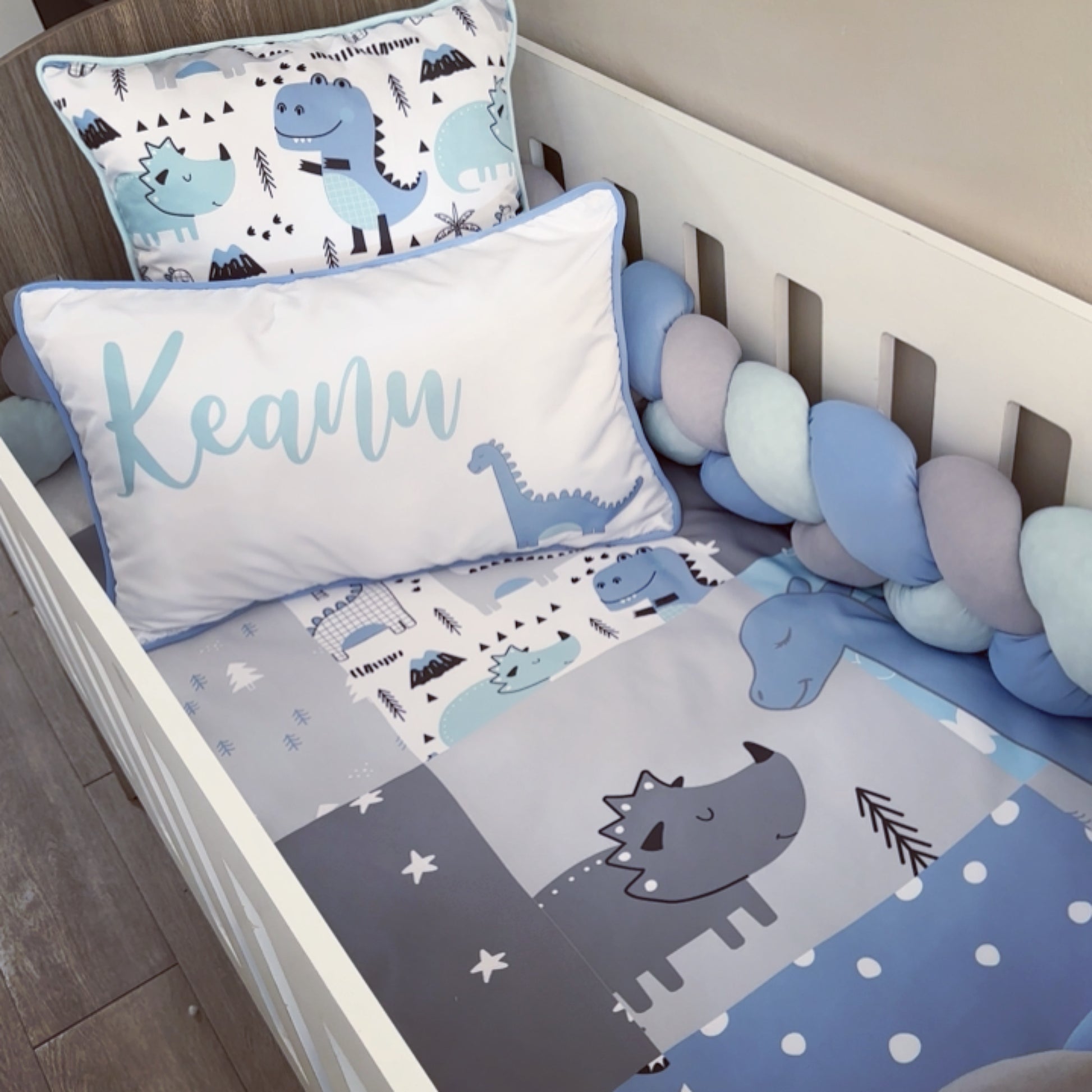 The Standard Set: Standard Duvet Cover & Inner (80 x 110cm) | 2,5m Braided Bumper | Cot Pillow Cover & Inner | Scatter Cover & Inner | Name Pillow Cover & Inner | White Fitted Sheet