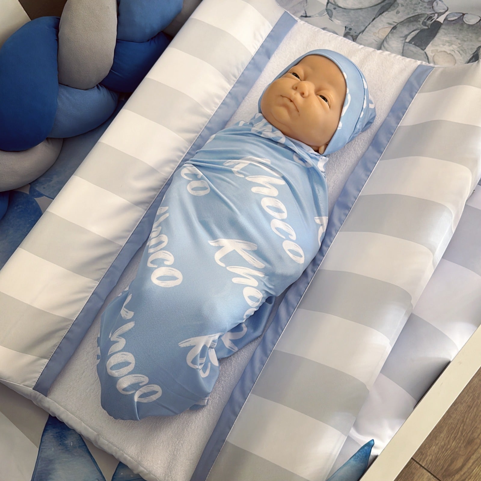 The Co-Sleeper Cot Set: 2 x Fitted Sheets (1 x Plain & 1 x Printed) | Blanket 70 x 100cm | Cot Pillow Cover 7 Inner | Small Name Pillow Cover & Inner