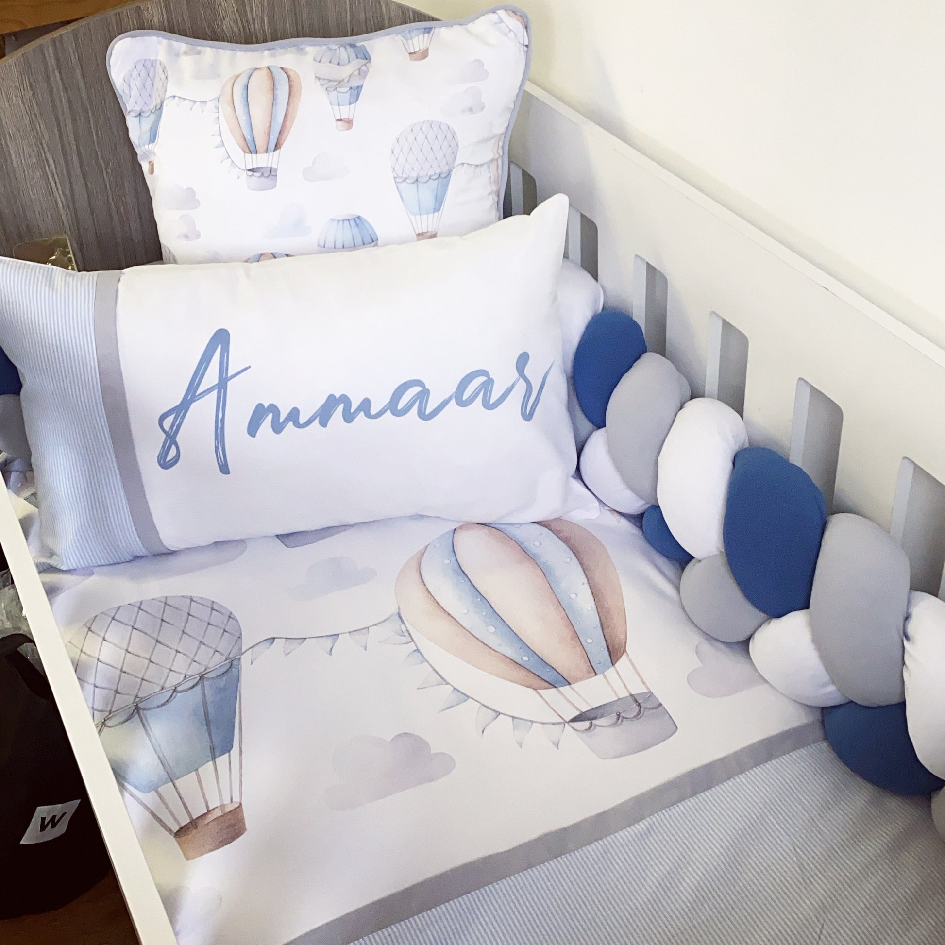 The Standard Set: Standard Duvet Cover & Inner (80 x 110cm) | 2,5m Braided Bumper | Cot Pillow Cover & Inner | Scatter Cover & Inner | Name Pillow Cover & Inner | White Fitted Sheet