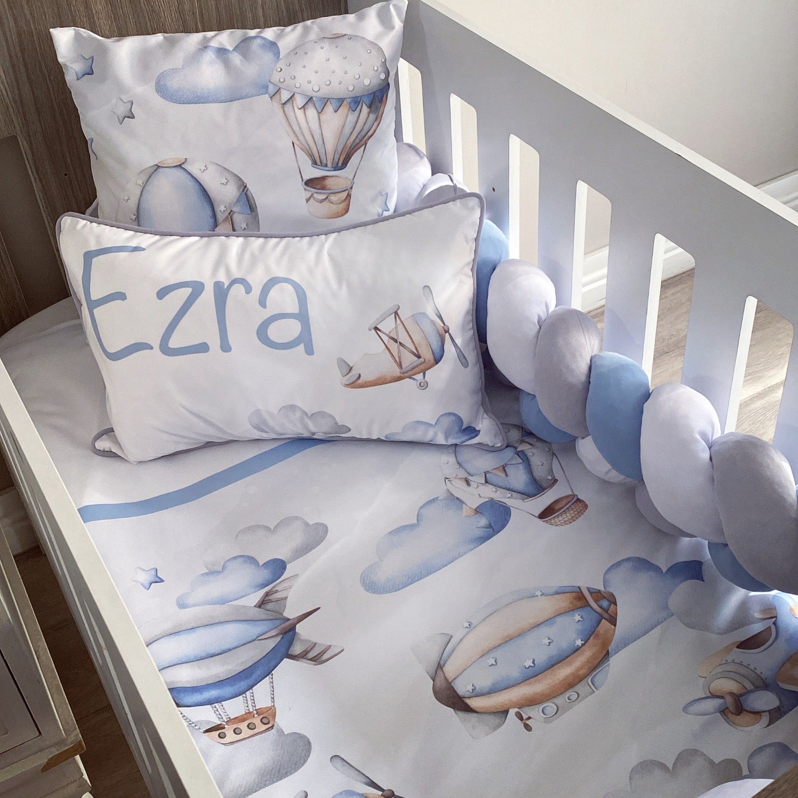 The Standard Set: Standard Duvet Cover & Inner (80 x 110cm) | 2,5m Braided Bumper | Cot Pillow Cover & Inner | Scatter Cover & Inner | Name Pillow Cover & Inner | White Fitted Sheet