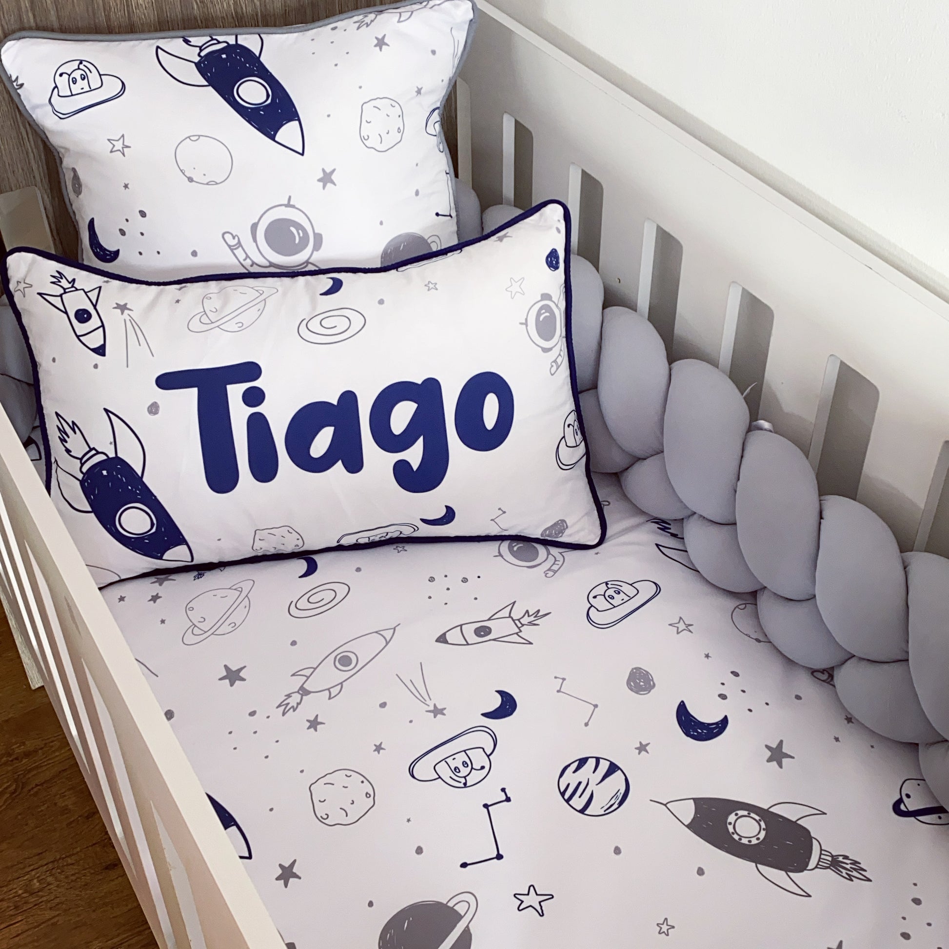 The Standard Set: Standard Duvet Cover & Inner (80 x 110cm) | 2,5m Braided Bumper | Cot Pillow Cover & Inner | Scatter Cover & Inner | Name Pillow Cover & Inner | White Fitted Sheet