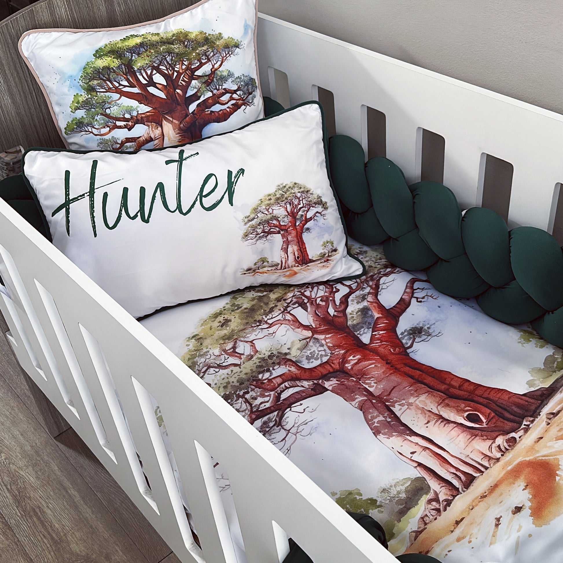 The Standard Set: Standard Duvet Cover & Inner (80 x 110cm) | 2,5m Braided Bumper | Cot Pillow Cover & Inner | Scatter Cover & Inner | Name Pillow Cover & Inner | White Fitted Sheet