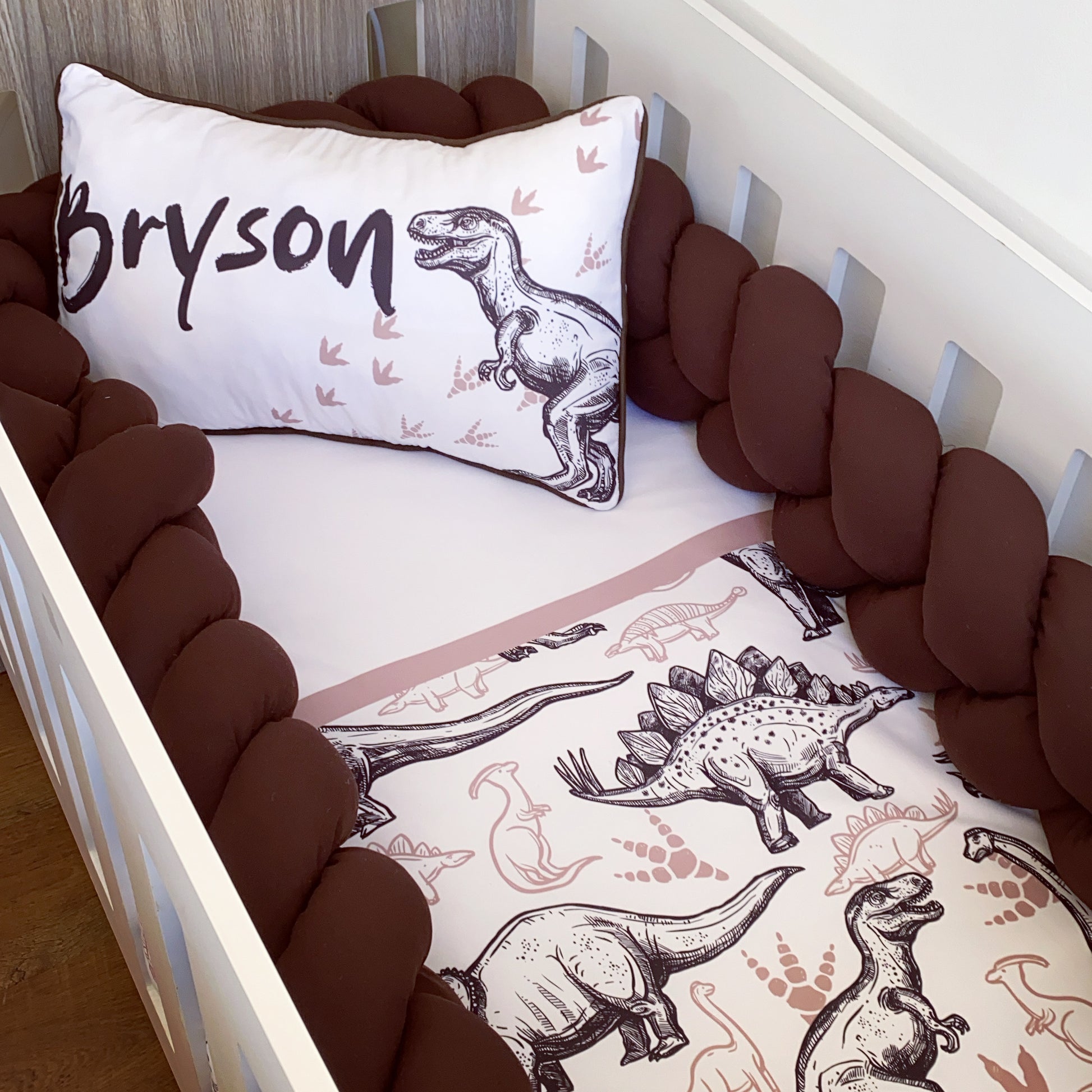 Cot Bedding - Brown Dinosaur Set 01