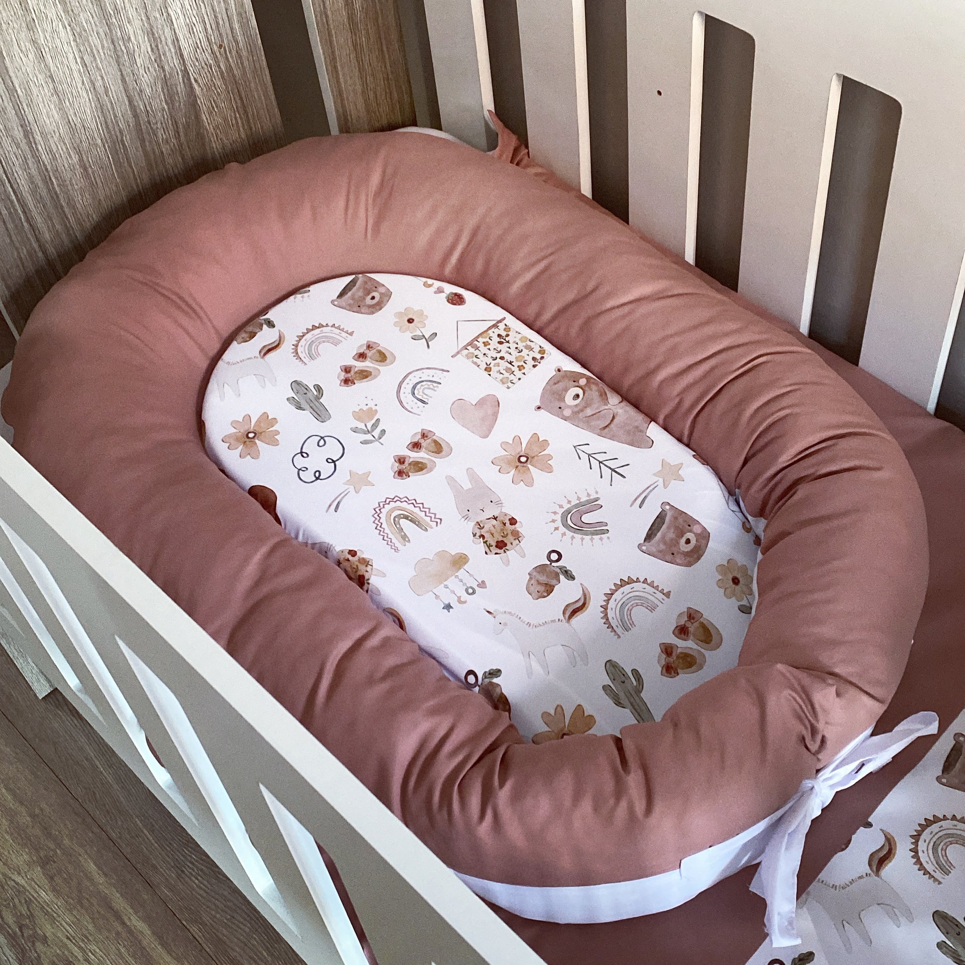 The Co-Sleeper Cot Set: 2 x Fitted Sheets (1 x Plain & 1 x Printed) | Blanket 70 x 100cm | Cot Pillow Cover 7 Inner | Small Name Pillow Cover & Inner
