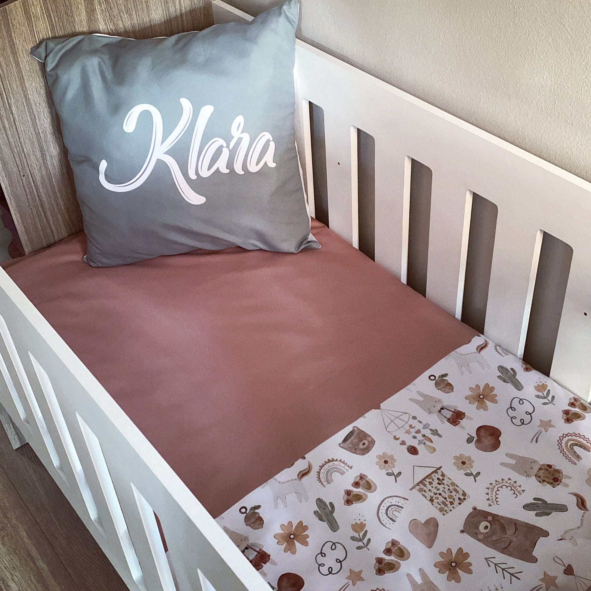 The Standard Set: Standard Duvet Cover & Inner (80 x 110cm) | 2,5m Braided Bumper | Cot Pillow Cover & Inner | Scatter Cover & Inner | Name Pillow Cover & Inner | White Fitted Sheet