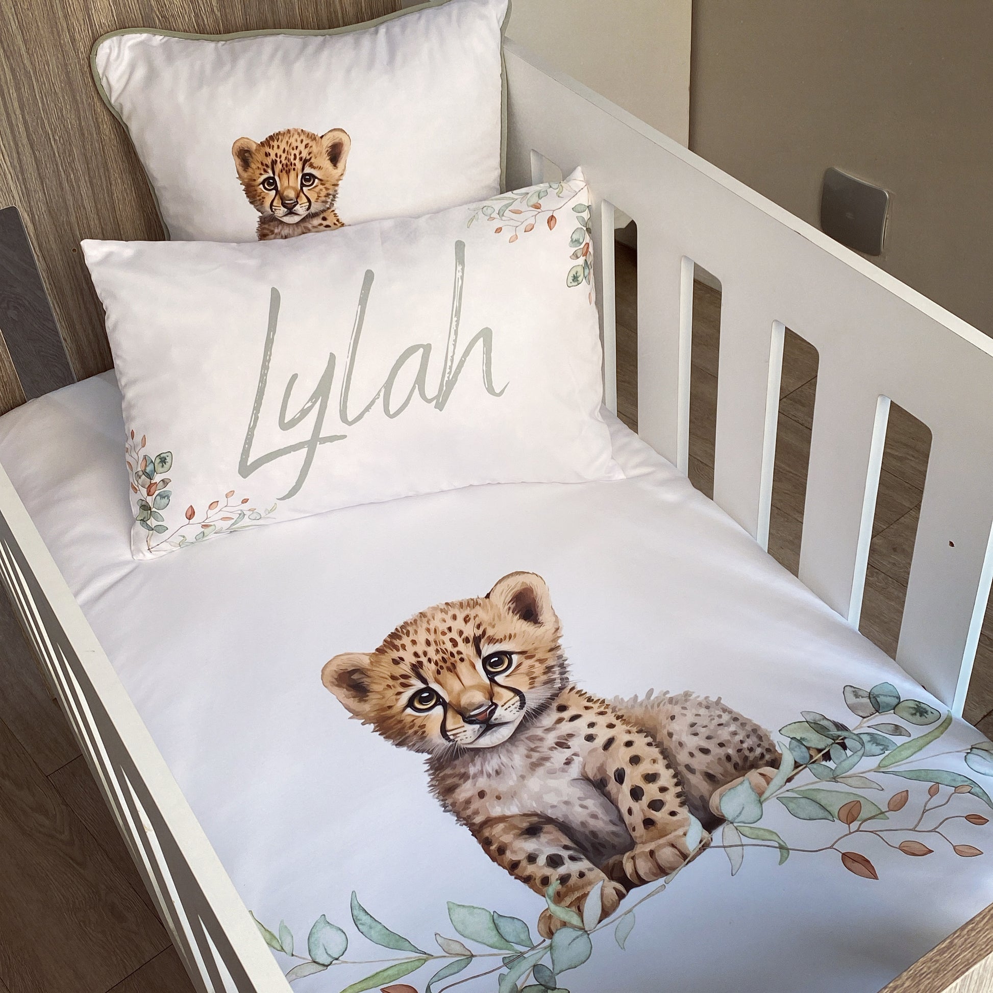 The Camping Cot Set: Standard Duvet Cover & Inner (80 x 110cm) | Cot Pillow Cover & Inner | Scatter Cover & Inner | Name Pillow Cover & Inner | White Fitted Sheet