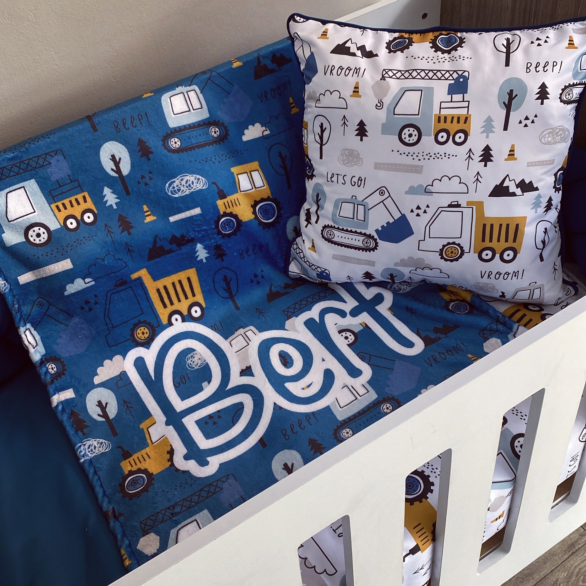 The Co-Sleeper Cot Set: 2 x Fitted Sheets (1 x Plain & 1 x Printed) | Blanket 70 x 100cm | Cot Pillow Cover 7 Inner | Small Name Pillow Cover & Inner