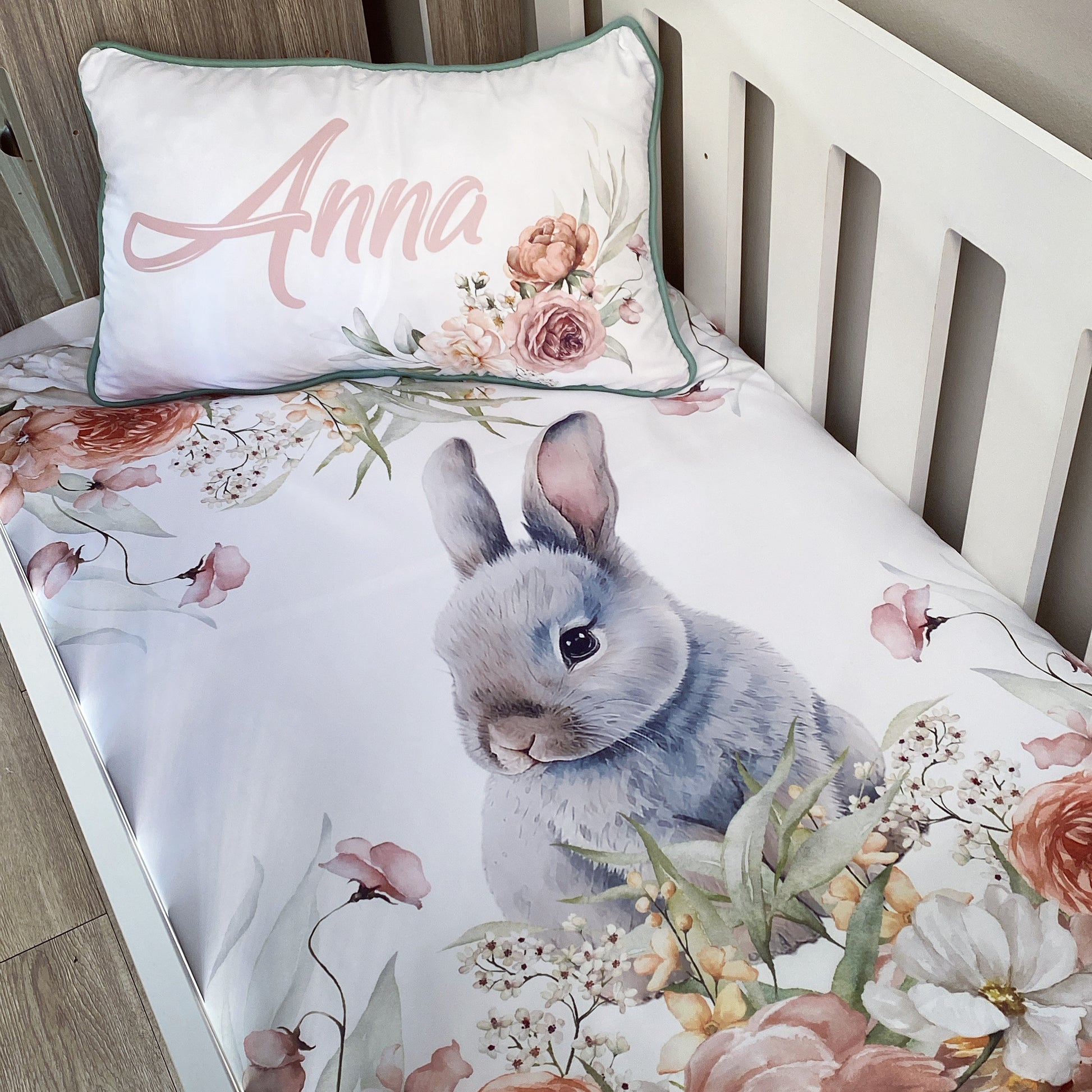 The Camping Cot Set: Standard Duvet Cover & Inner (80 x 110cm) | Cot Pillow Cover & Inner | Scatter Cover & Inner | Name Pillow Cover & Inner | White Fitted Sheet