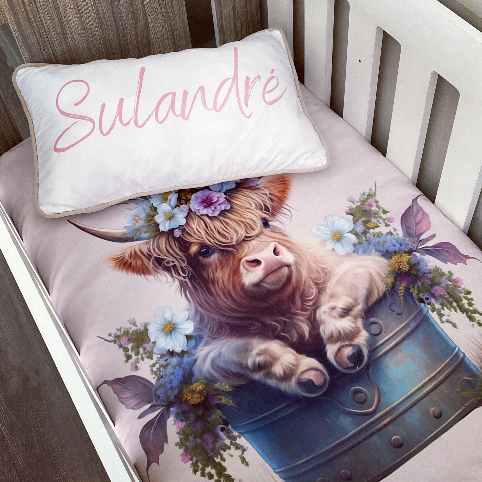 Cot Bedding - Flower Highlands Cow Set 01
