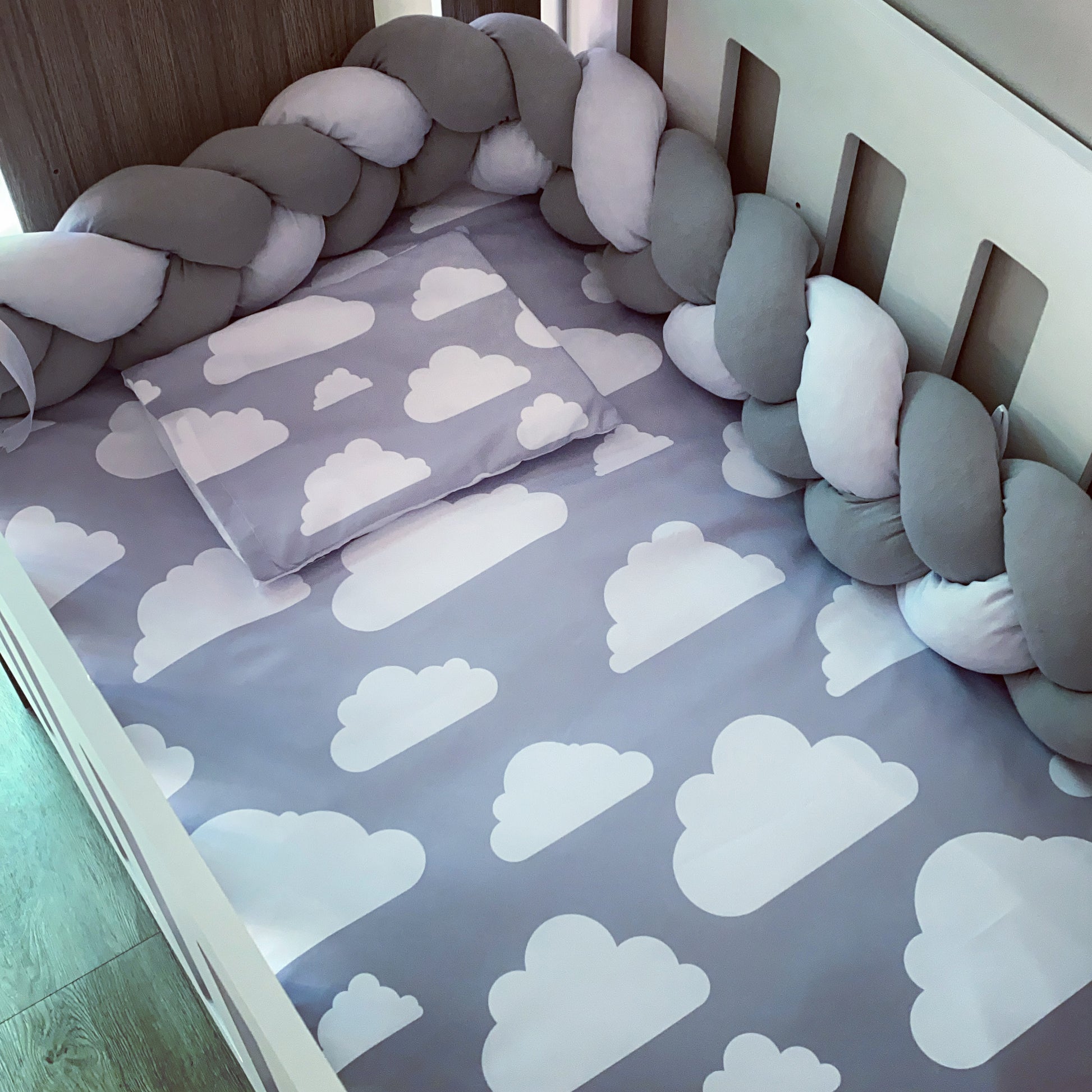 The Starter Set: Standard Duvet Cover & Inner (80 x 110cm) | 2,5m Braided Bumper | Cot Pillow Cover & Inner | White Fitted Sheet