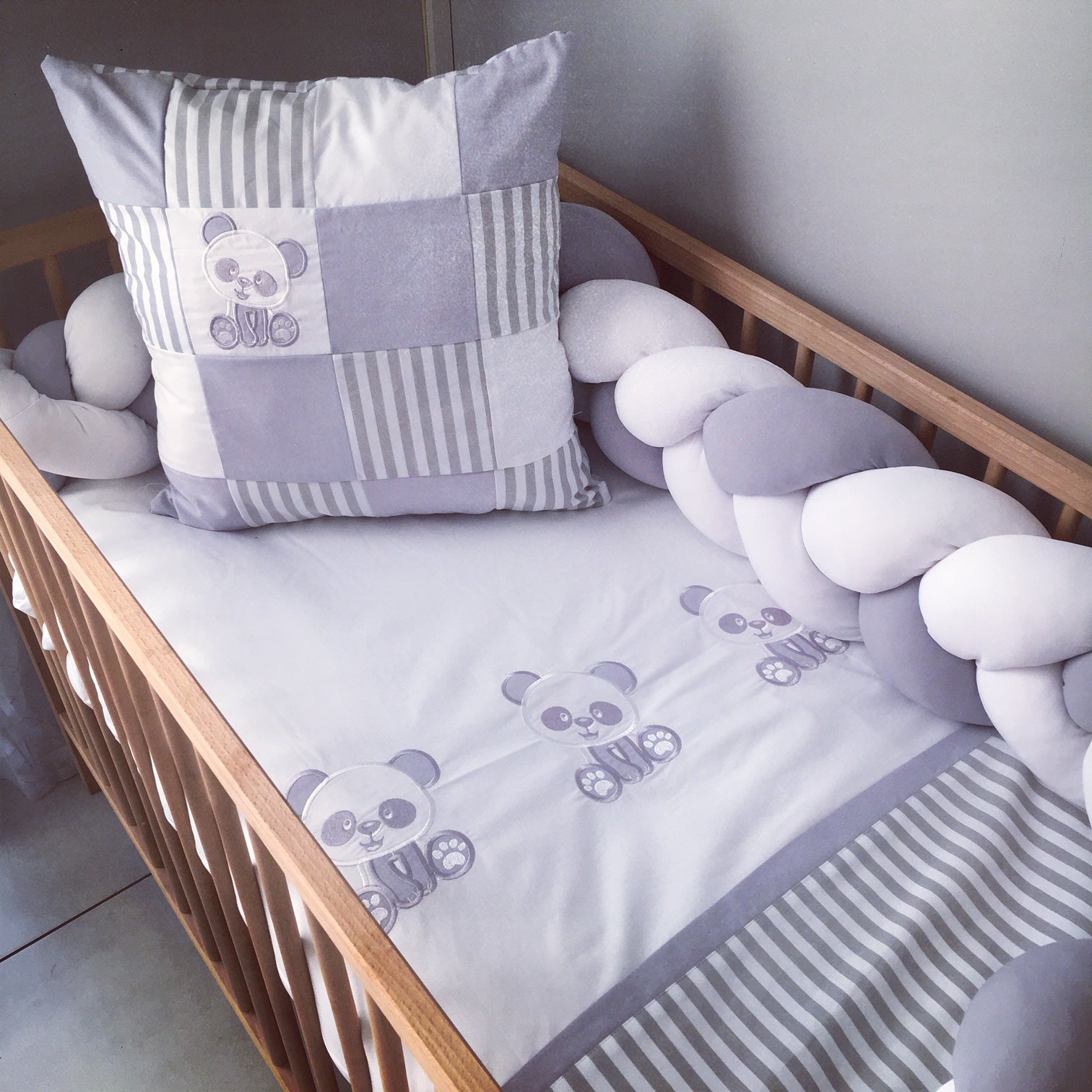 Cot Bedding - Grey Panda Set 01
