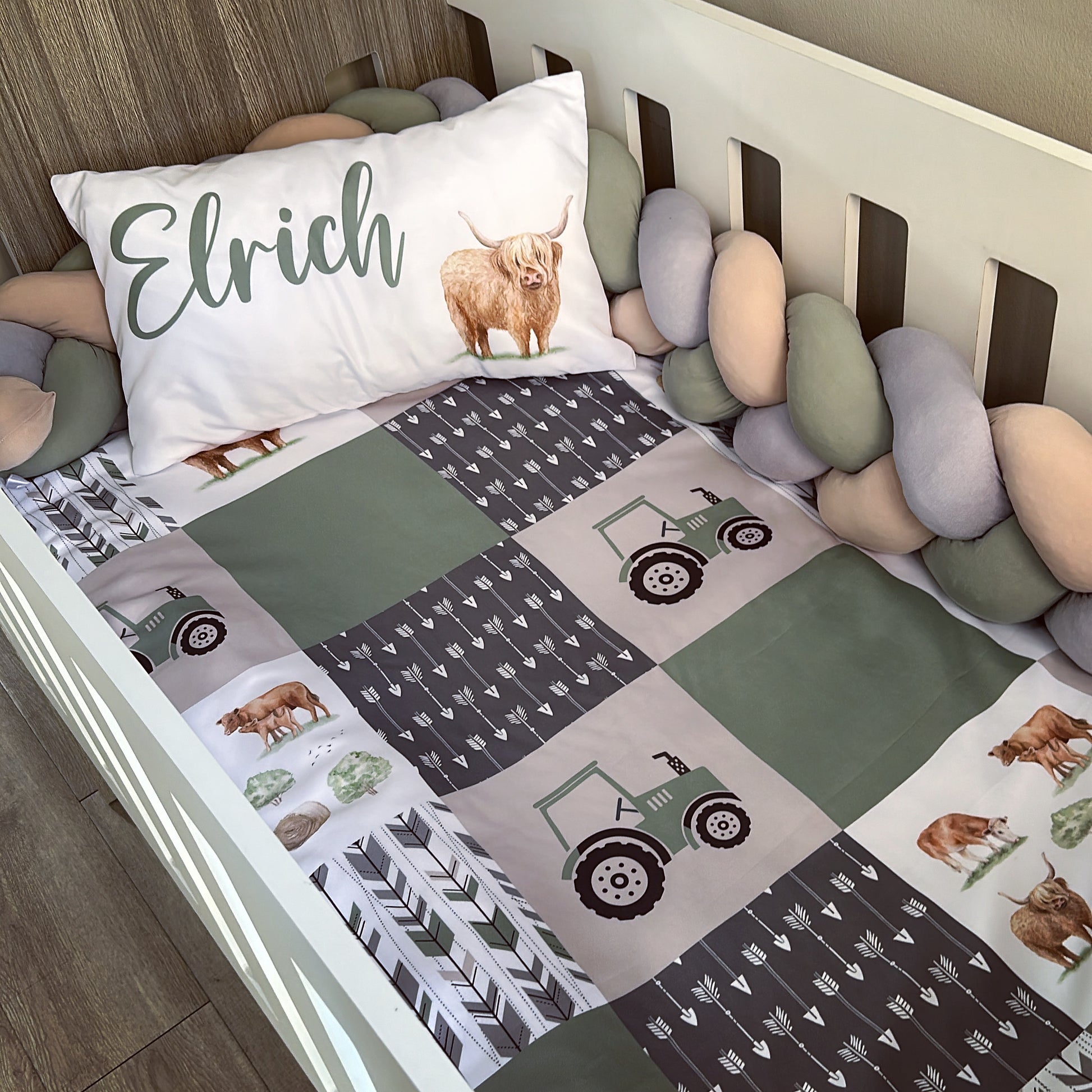 The Standard Set: Standard Duvet Cover & Inner (80 x 110cm) | 2,5m Braided Bumper | Cot Pillow Cover & Inner | Scatter Cover & Inner | Name Pillow Cover & Inner | White Fitted Sheet