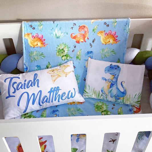 Cot Bedding - Blue Mustard Dinosaur Set 02