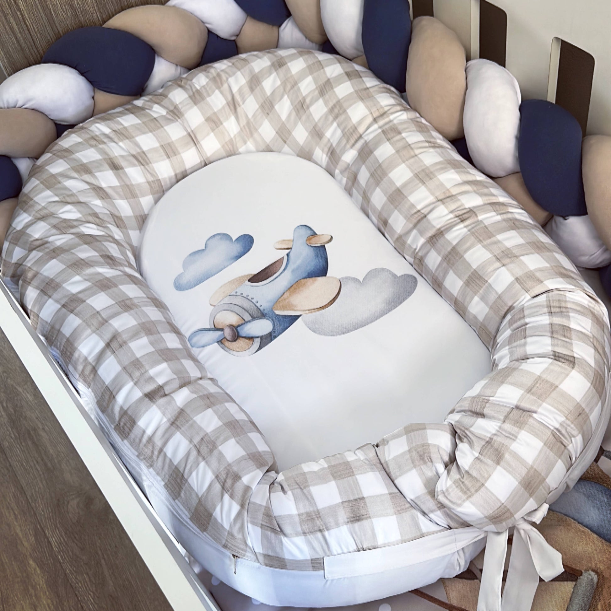 The Starter Set: Standard Duvet Cover & Inner (80 x 110cm) | 2,5m Braided Bumper | Cot Pillow Cover & Inner | White Fitted Sheet
