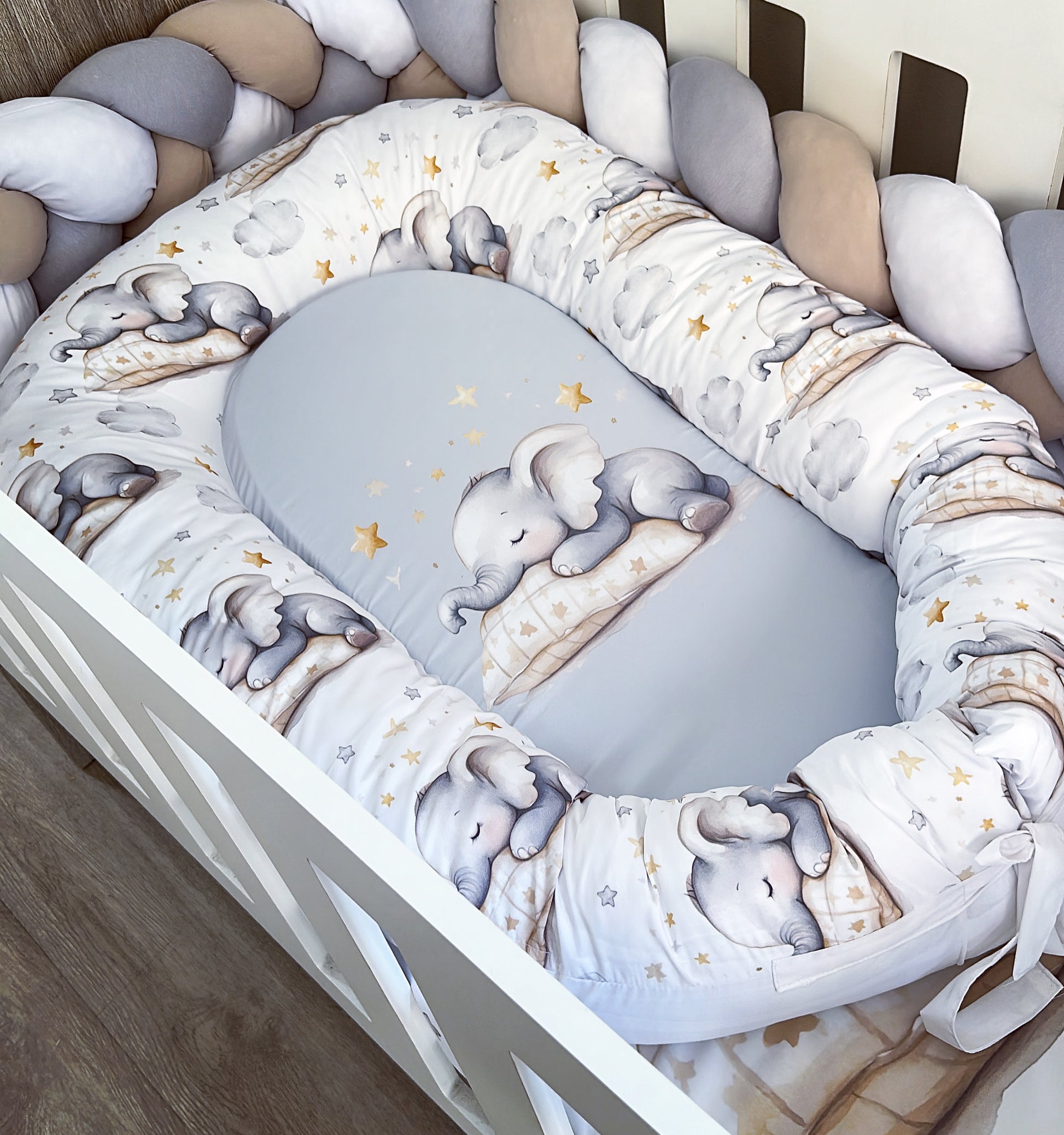 The Starter Set: Standard Duvet Cover & Inner (80 x 110cm) | 2,5m Braided Bumper | Cot Pillow Cover & Inner | White Fitted Sheet