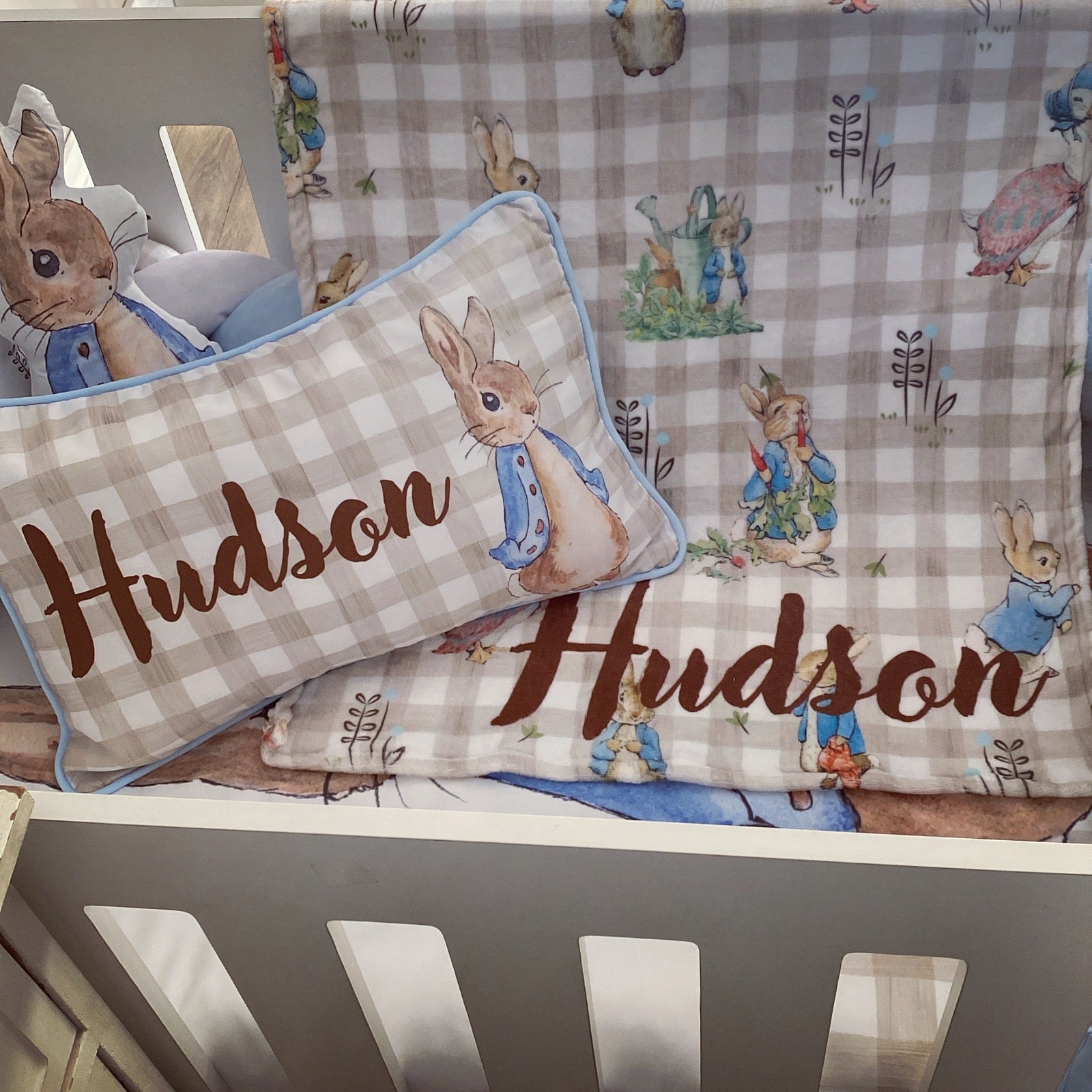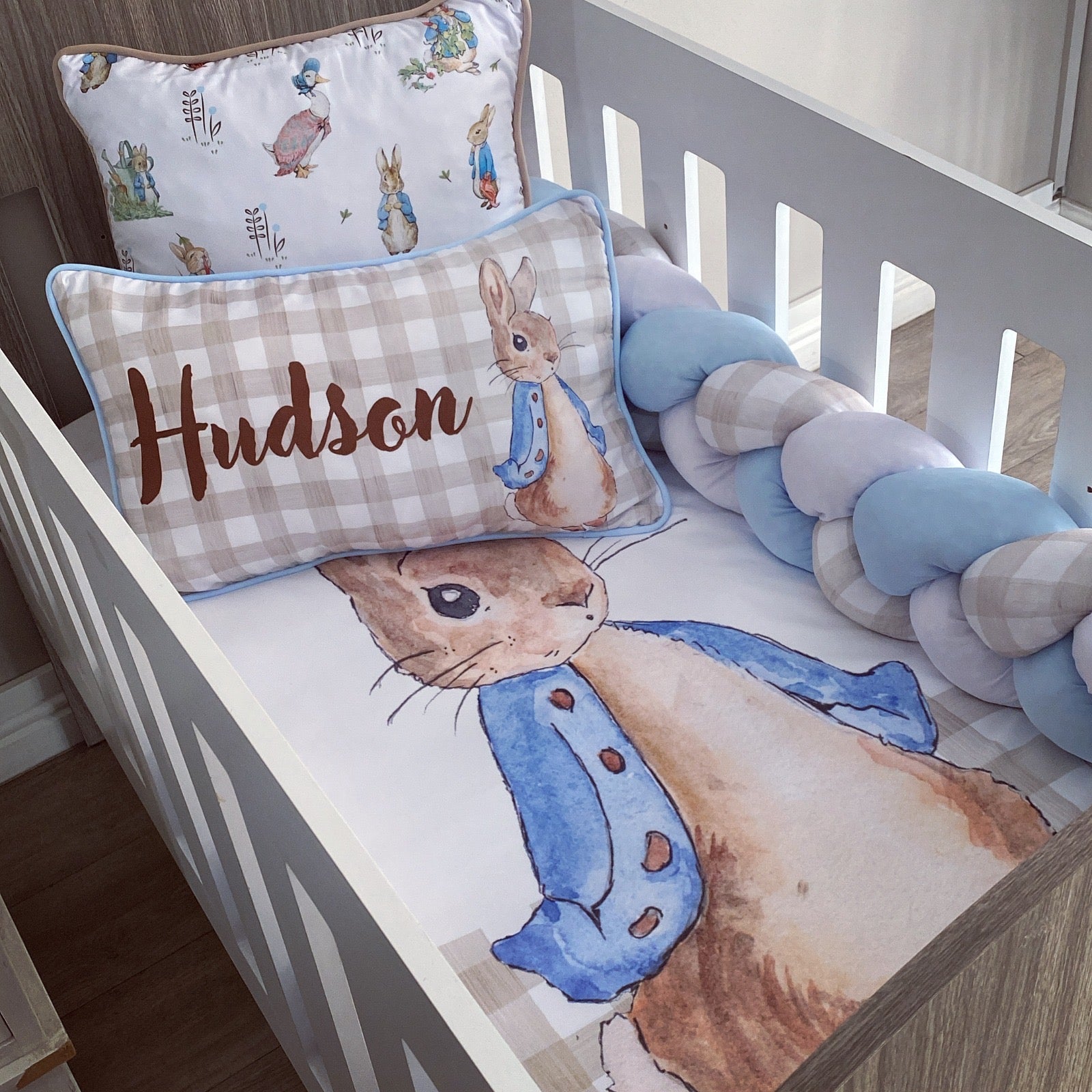 The Standard Set: Standard Duvet Cover & Inner (80 x 110cm) | 2,5m Braided Bumper | Cot Pillow Cover & Inner | Scatter Cover & Inner | Name Pillow Cover & Inner | White Fitted Sheet