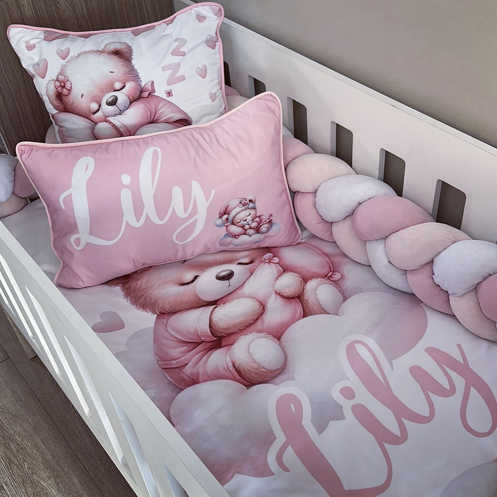 The Standard Set: Standard Duvet Cover & Inner (80 x 110cm) | 2,5m Braided Bumper | Cot Pillow Cover & Inner | Scatter Cover & Inner | Name Pillow Cover & Inner | White Fitted Sheet