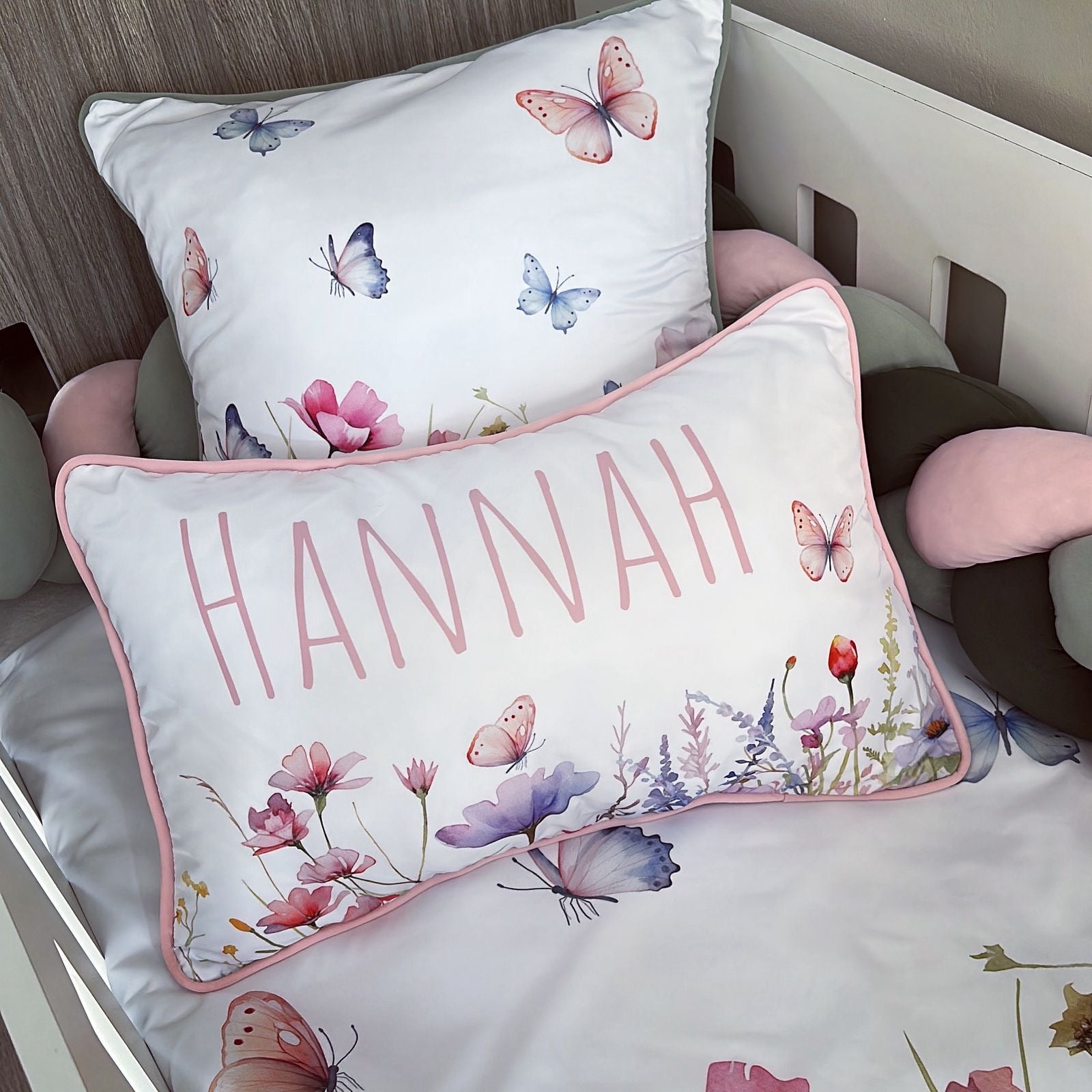 The Camping Cot Set: Standard Duvet Cover & Inner (80 x 110cm) | Cot Pillow Cover & Inner | Scatter Cover & Inner | Name Pillow Cover & Inner | White Fitted Sheet