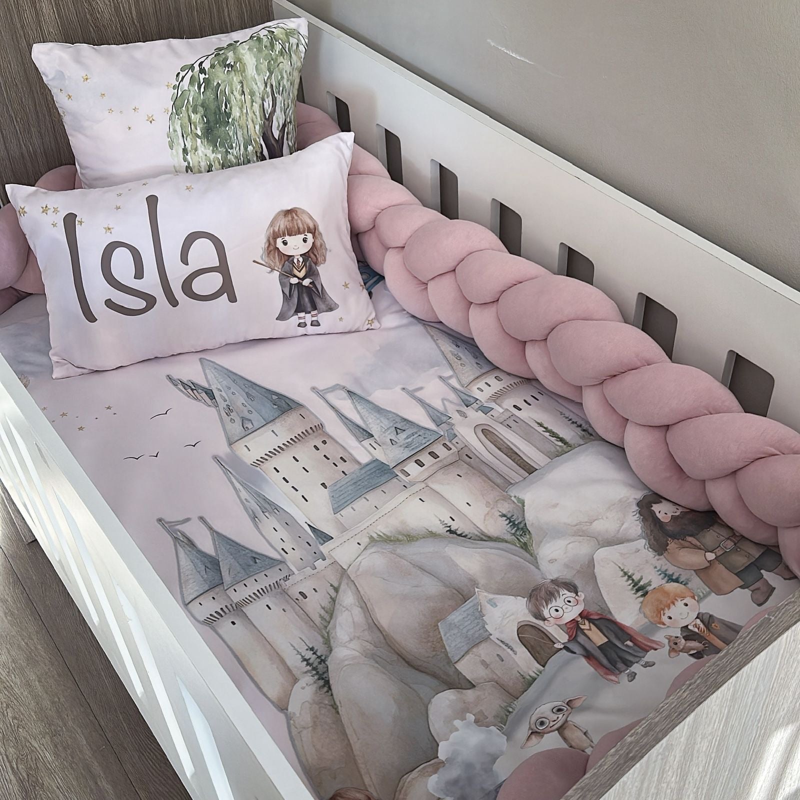 The Standard Set: Standard Duvet Cover & Inner (80 x 110cm) | 2,5m Braided Bumper | Cot Pillow Cover & Inner | Scatter Cover & Inner | Name Pillow Cover & Inner | White Fitted Sheet