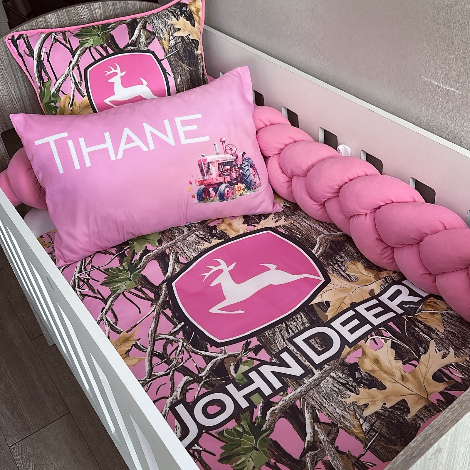 Cot Bedding - Pink John Deere Set 01