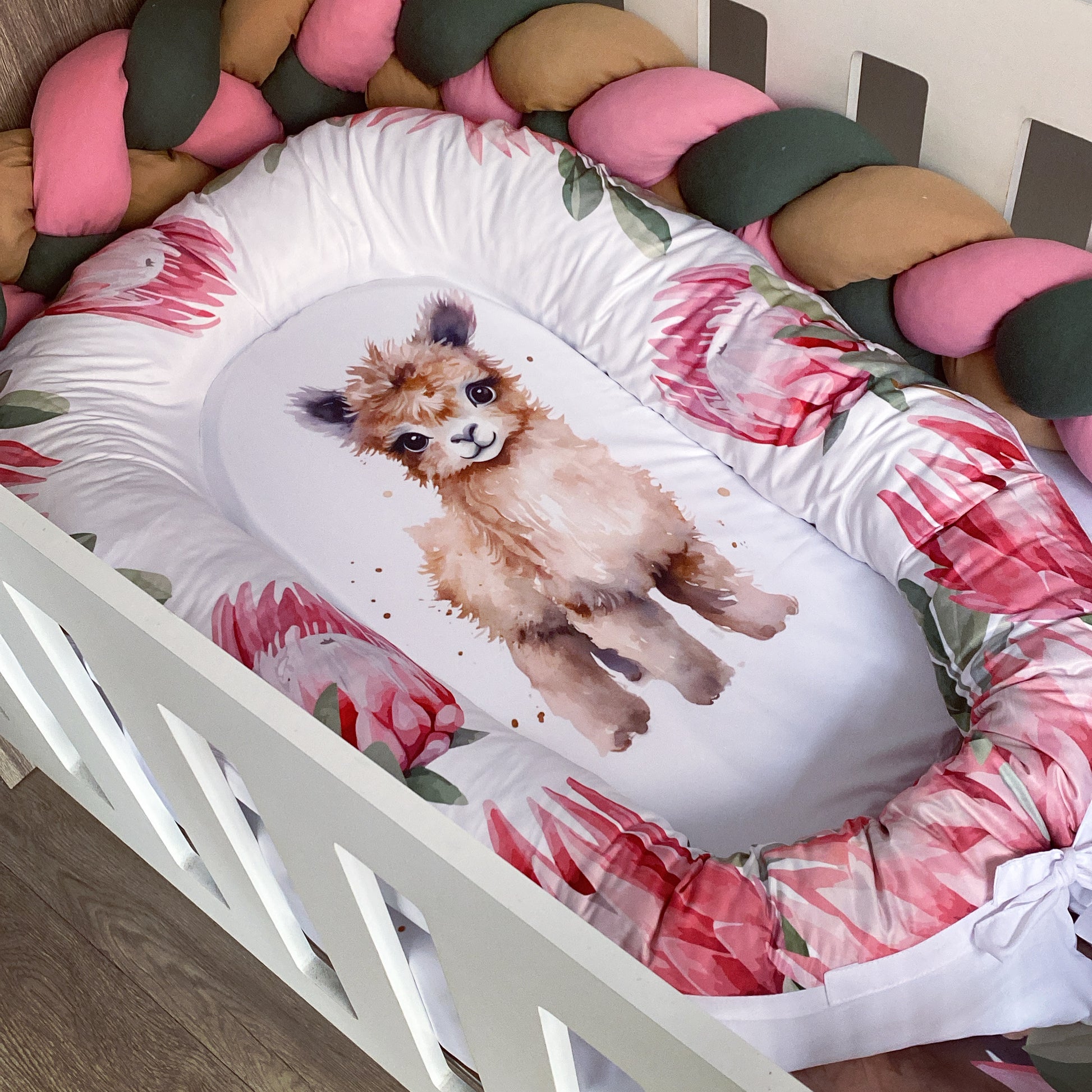 The Nursery Set: Standard Duvet Cover & Inner (80 x 110cm) | 2,5m Braided Bumper | Cot Pillow Cover & Inner | Scatter Cover & Inner | Name Pillow Cover & Inner | Change Mat Cover & Inner | Steel Frame or Wooden Frame | Set of 4 Dangles | White Fitted Sheet