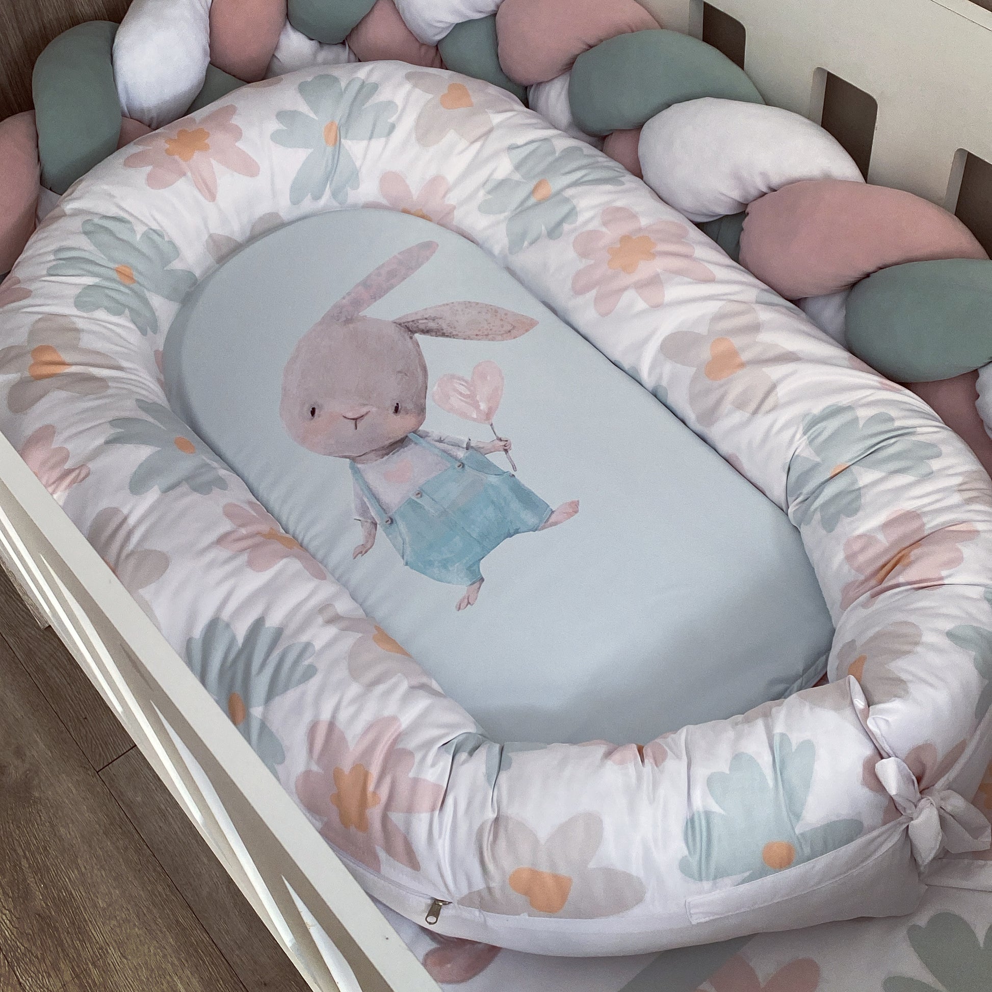 The Nursery Set: Standard Duvet Cover & Inner (80 x 110cm) | 2,5m Braided Bumper | Cot Pillow Cover & Inner | Scatter Cover & Inner | Name Pillow Cover & Inner | Change Mat Cover & Inner | Steel Frame or Wooden Frame | Set of 4 Dangles | White Fitted Sheet