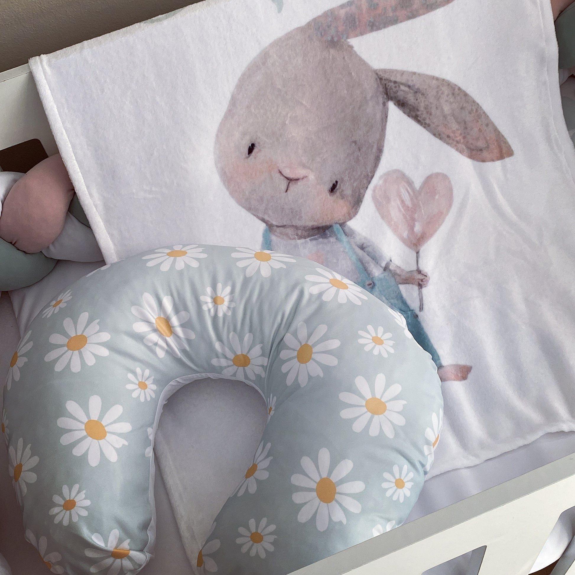 The Co-Sleeper Cot Set: 2 x Fitted Sheets (1 x Plain & 1 x Printed) | Blanket 70 x 100cm | Cot Pillow Cover 7 Inner | Small Name Pillow Cover & Inner