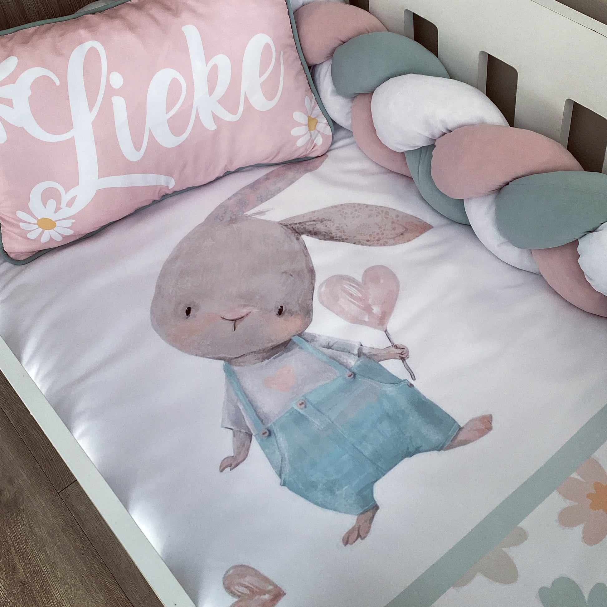 The Standard Set: Standard Duvet Cover & Inner (80 x 110cm) | 2,5m Braided Bumper | Cot Pillow Cover & Inner | Scatter Cover & Inner | Name Pillow Cover & Inner | White Fitted Sheet