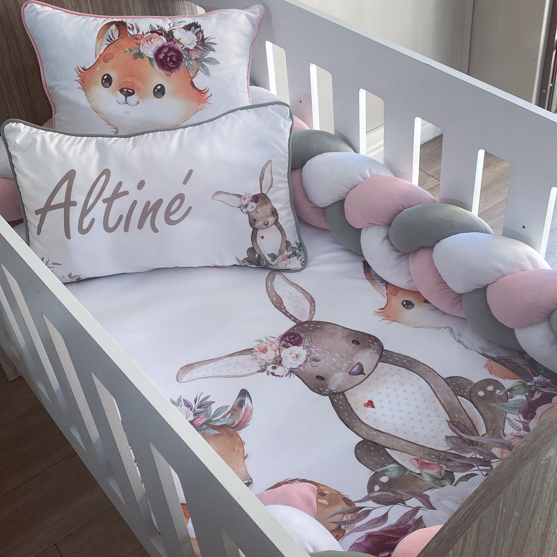 The Standard Set: Standard Duvet Cover & Inner (80 x 110cm) | 2,5m Braided Bumper | Cot Pillow Cover & Inner | Scatter Cover & Inner | Name Pillow Cover & Inner | White Fitted Sheet