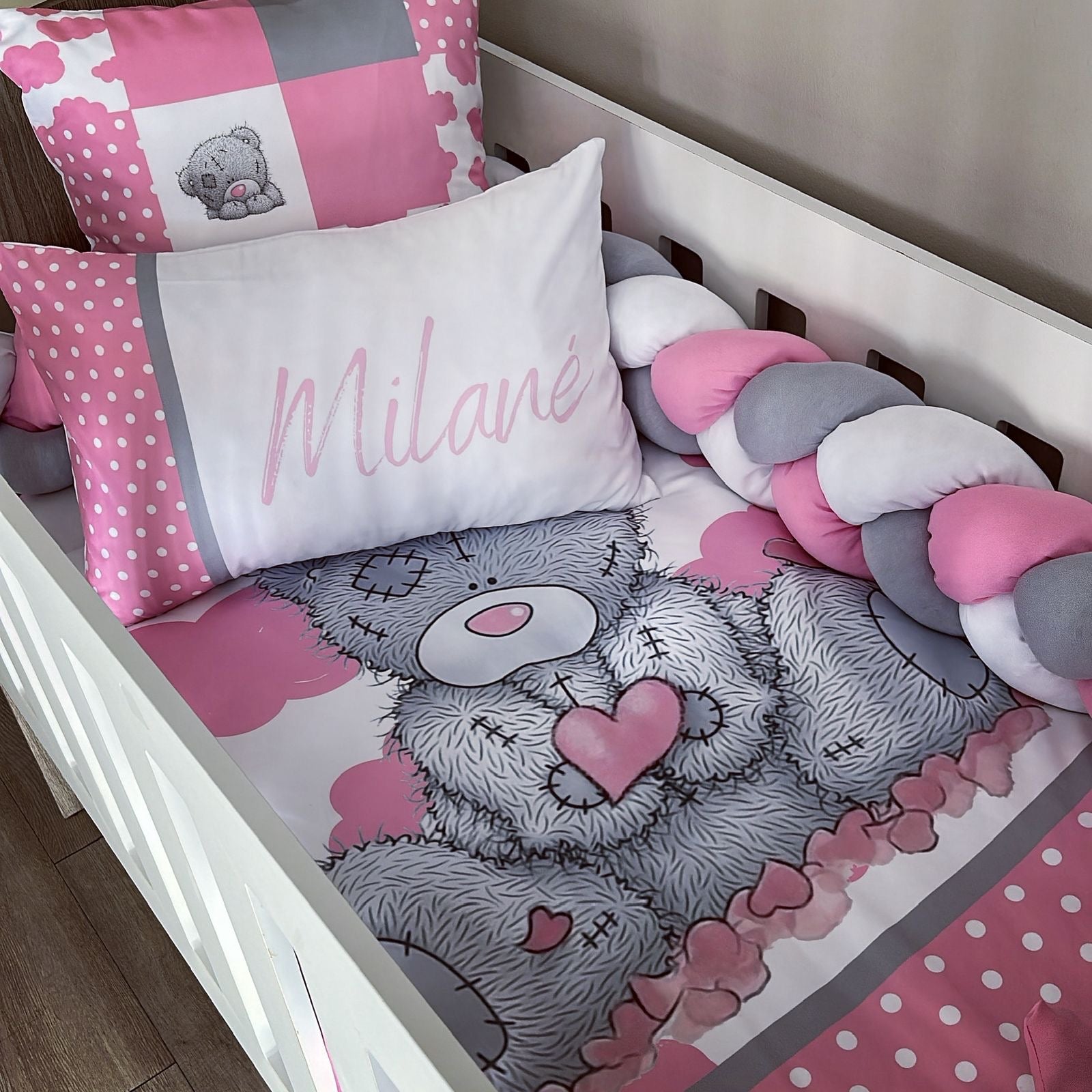 The Standard Set: Standard Duvet Cover & Inner (80 x 110cm) | 2,5m Braided Bumper | Cot Pillow Cover & Inner | Scatter Cover & Inner | Name Pillow Cover & Inner | White Fitted Sheet