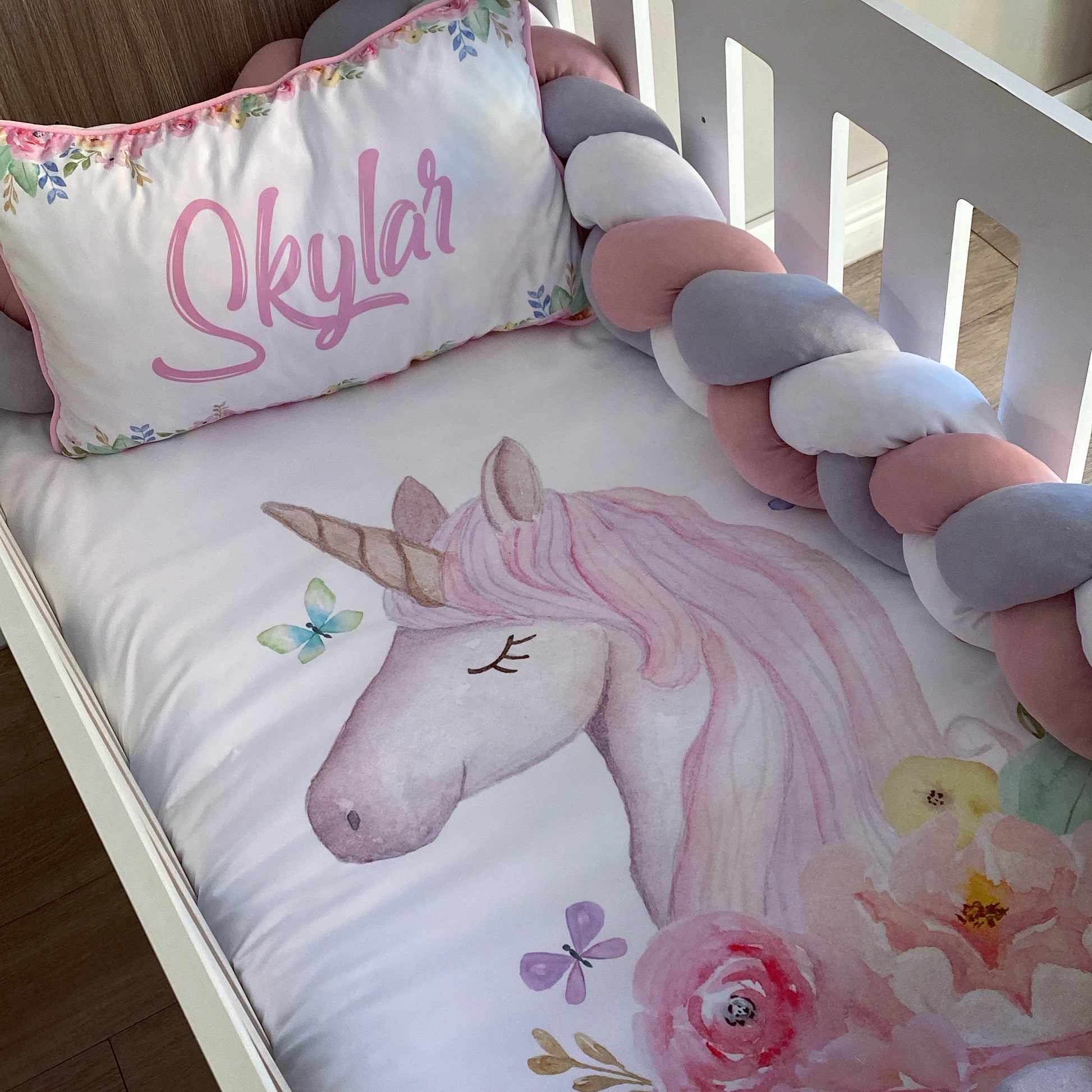 The Standard Set: Standard Duvet Cover & Inner (80 x 110cm) | 2,5m Braided Bumper | Cot Pillow Cover & Inner | Scatter Cover & Inner | Name Pillow Cover & Inner | White Fitted Sheet