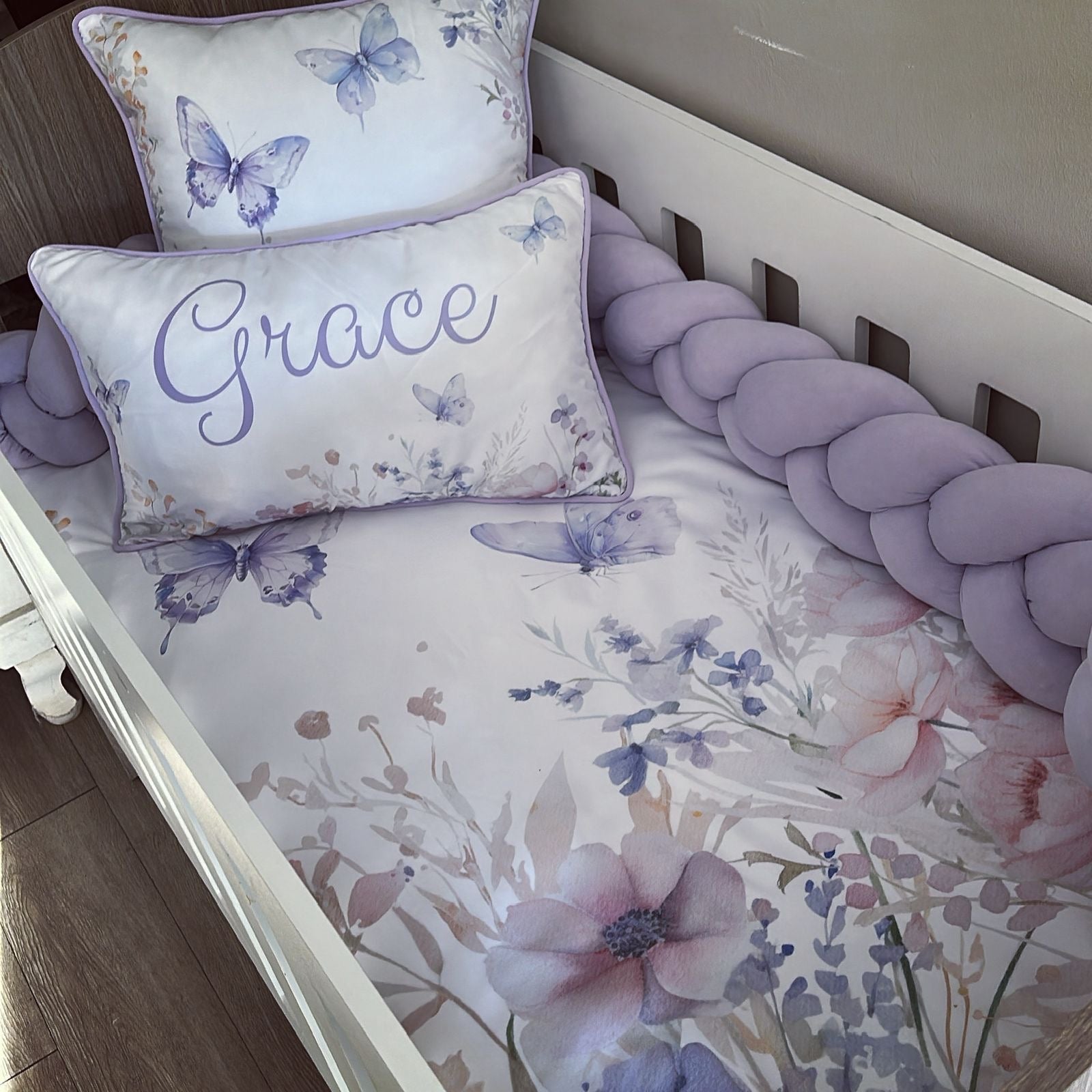 The Standard Set: Standard Duvet Cover & Inner (80 x 110cm) | 2,5m Braided Bumper | Cot Pillow Cover & Inner | Scatter Cover & Inner | Name Pillow Cover & Inner | White Fitted Sheet