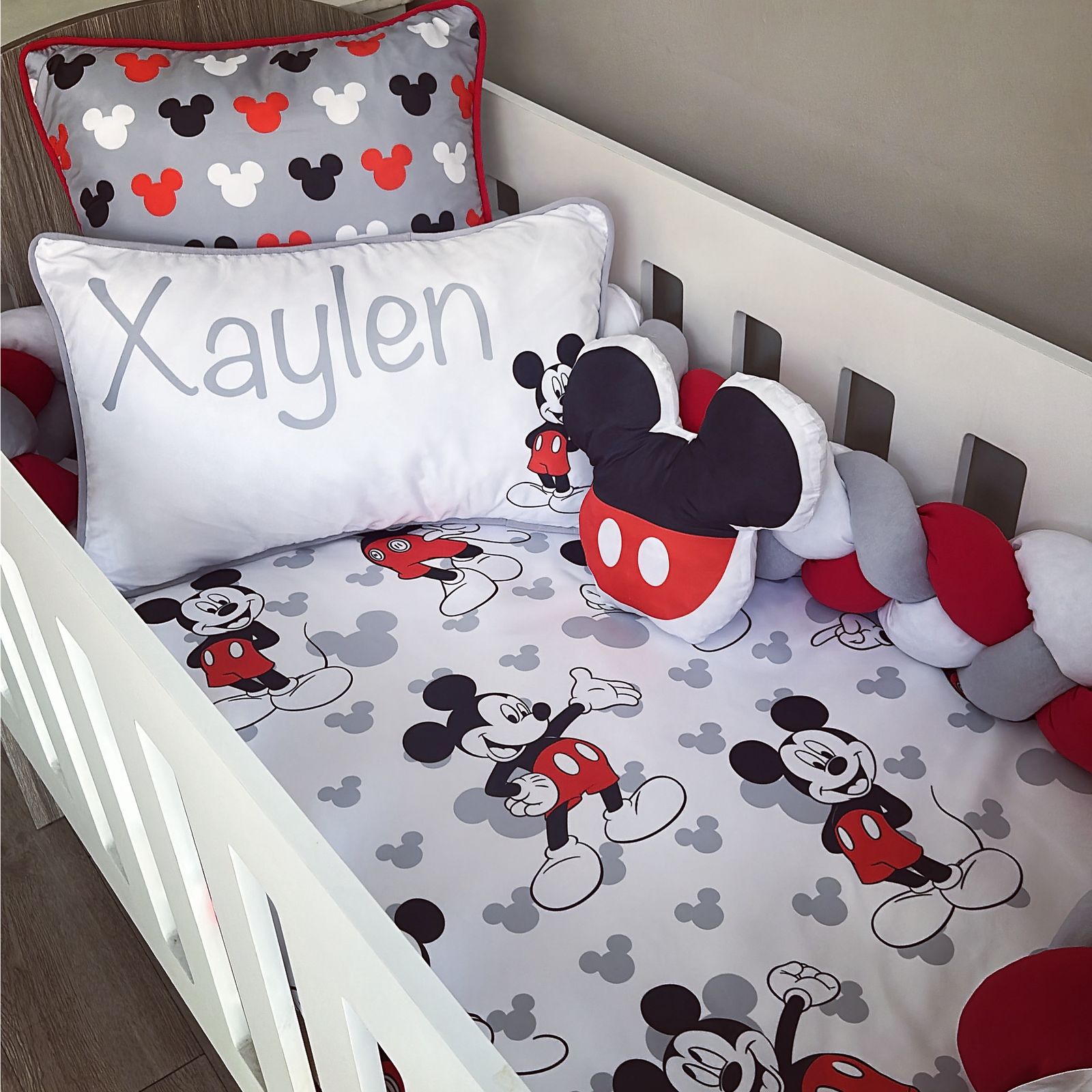 The Nursery Set: Standard Duvet Cover & Inner (80 x 110cm) | 2,5m Braided Bumper | Cot Pillow Cover & Inner | Scatter Cover & Inner | Name Pillow Cover & Inner | Change Mat Cover & Inner | Steel Frame or Wooden Frame | Set of 4 Dangles | White Fitted Sheet