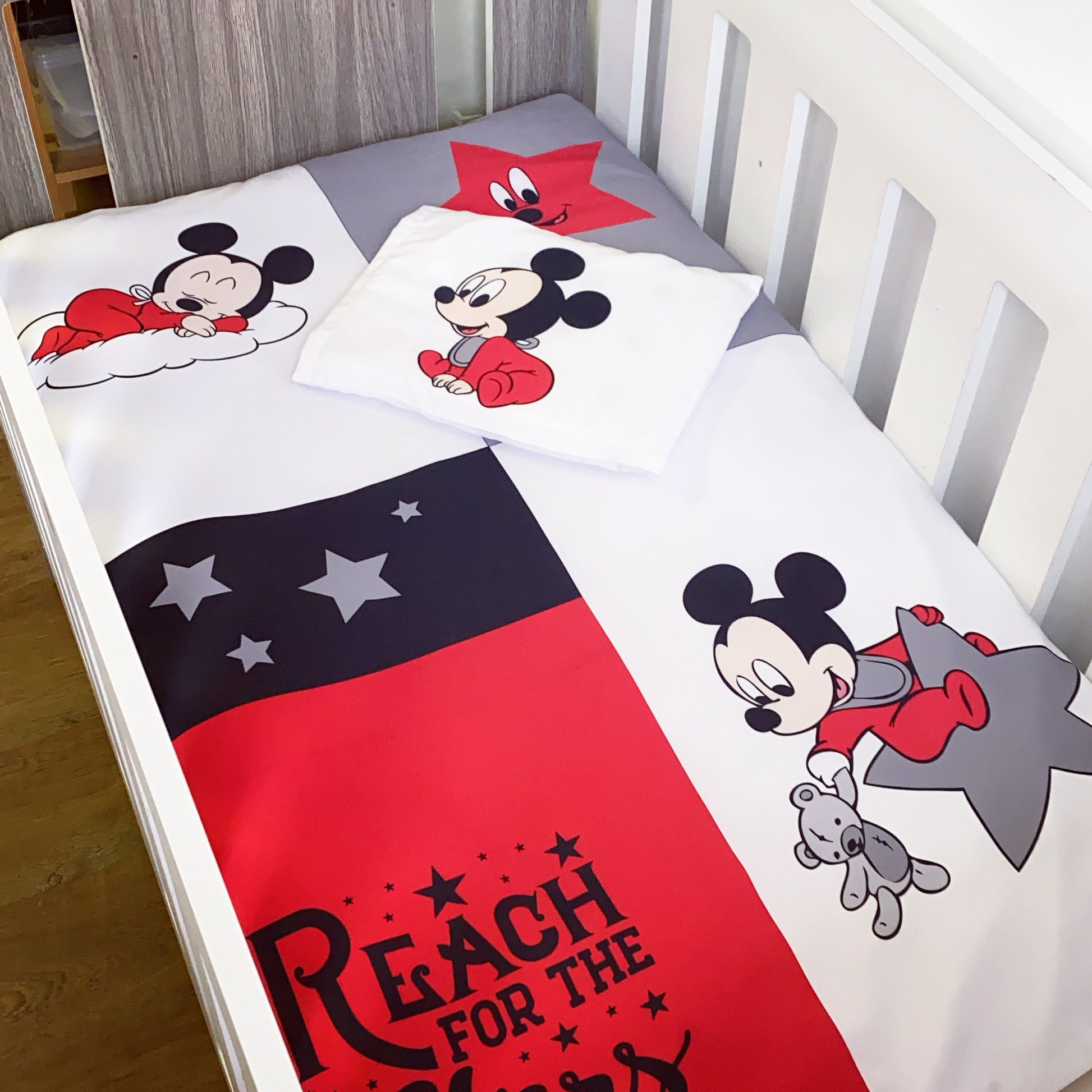 The Nursery Set: Standard Duvet Cover & Inner (80 x 110cm) | 2,5m Braided Bumper | Cot Pillow Cover & Inner | Scatter Cover & Inner | Name Pillow Cover & Inner | Change Mat Cover & Inner | Steel Frame or Wooden Frame | Set of 4 Dangles | White Fitted Sheet