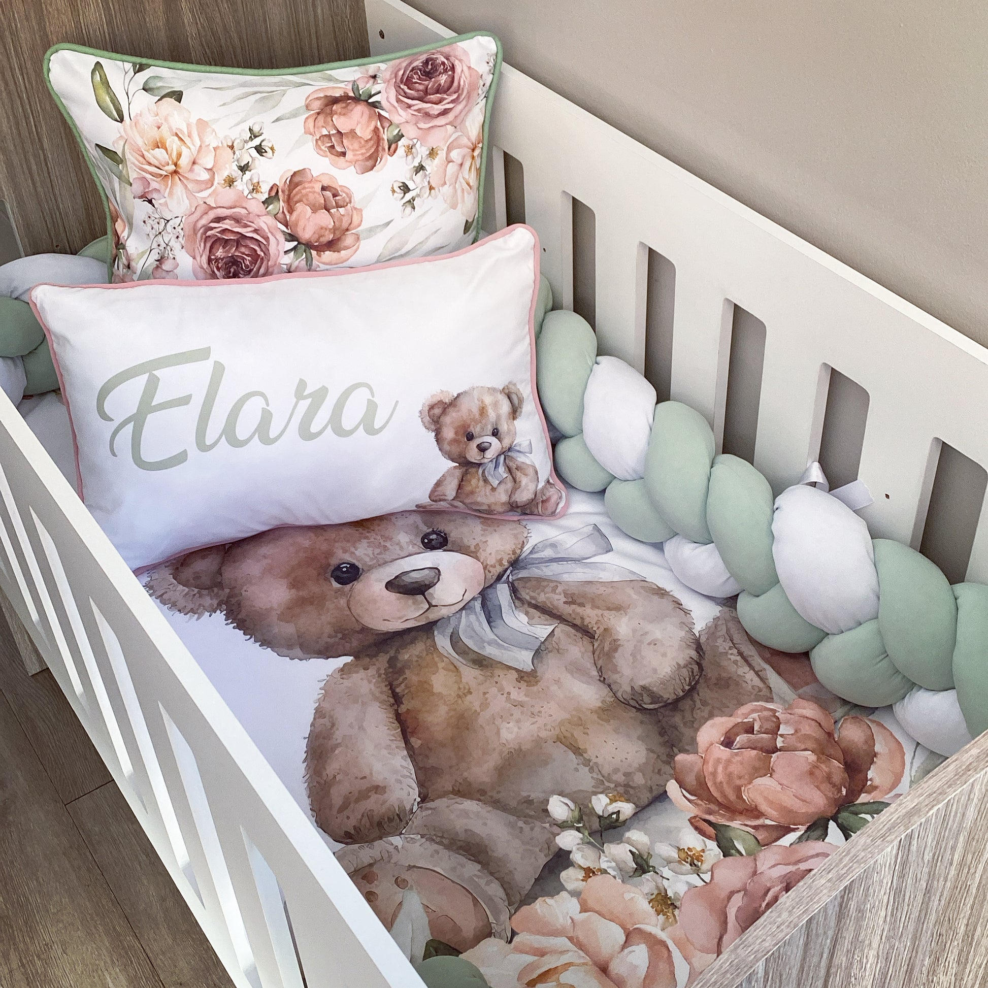 The Standard Set: Standard Duvet Cover & Inner (80 x 110cm) | 2,5m Braided Bumper | Cot Pillow Cover & Inner | Scatter Cover & Inner | Name Pillow Cover & Inner | White Fitted Sheet