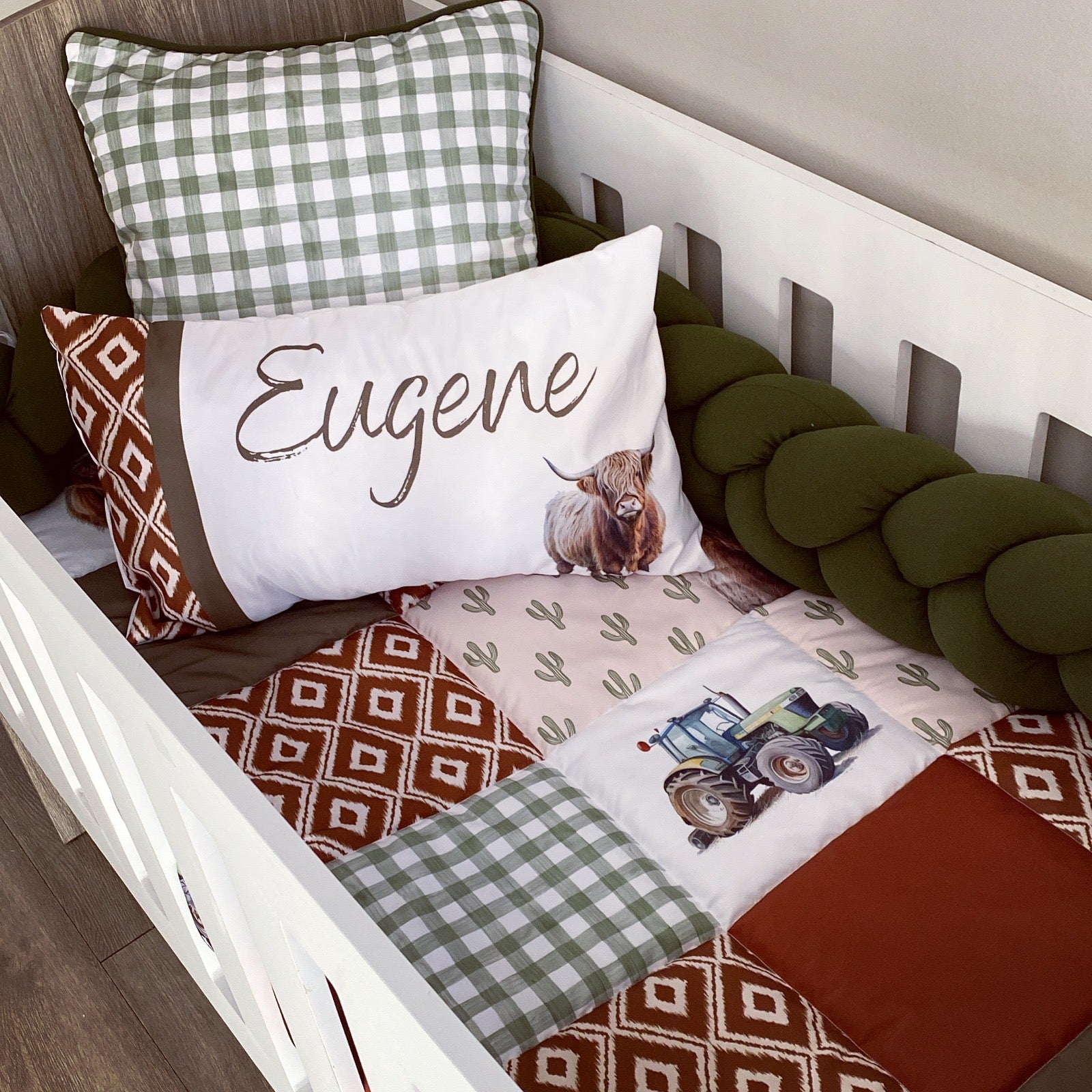 The Standard Set: Standard Duvet Cover & Inner (80 x 110cm) | 2,5m Braided Bumper | Cot Pillow Cover & Inner | Scatter Cover & Inner | Name Pillow Cover & Inner | White Fitted Sheet