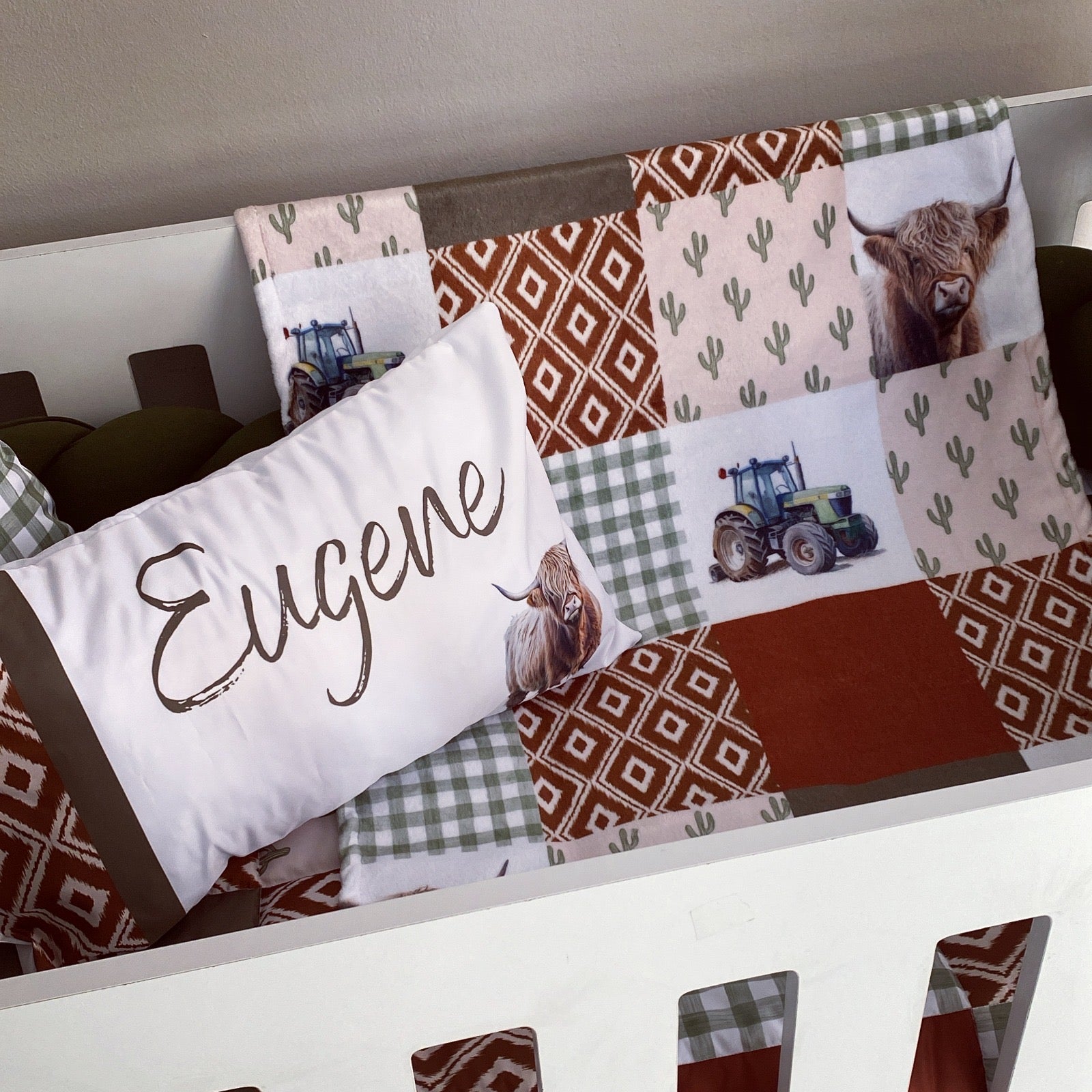 The Co-Sleeper Cot Set: 2 x Fitted Sheets (1 x Plain & 1 x Printed) | Blanket 70 x 100cm | Cot Pillow Cover 7 Inner | Small Name Pillow Cover & Inner