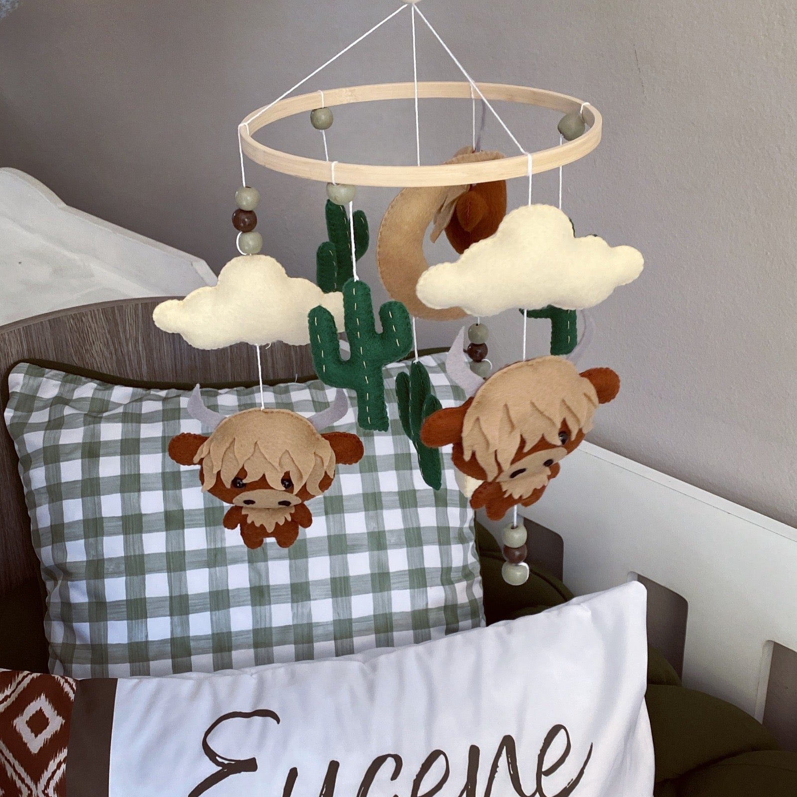 The Nursery Set: Standard Duvet Cover & Inner (80 x 110cm) | 2,5m Braided Bumper | Cot Pillow Cover & Inner | Scatter Cover & Inner | Name Pillow Cover & Inner | Change Mat Cover & Inner | Steel Frame or Wooden Frame | Set of 4 Dangles | White Fitted Sheet