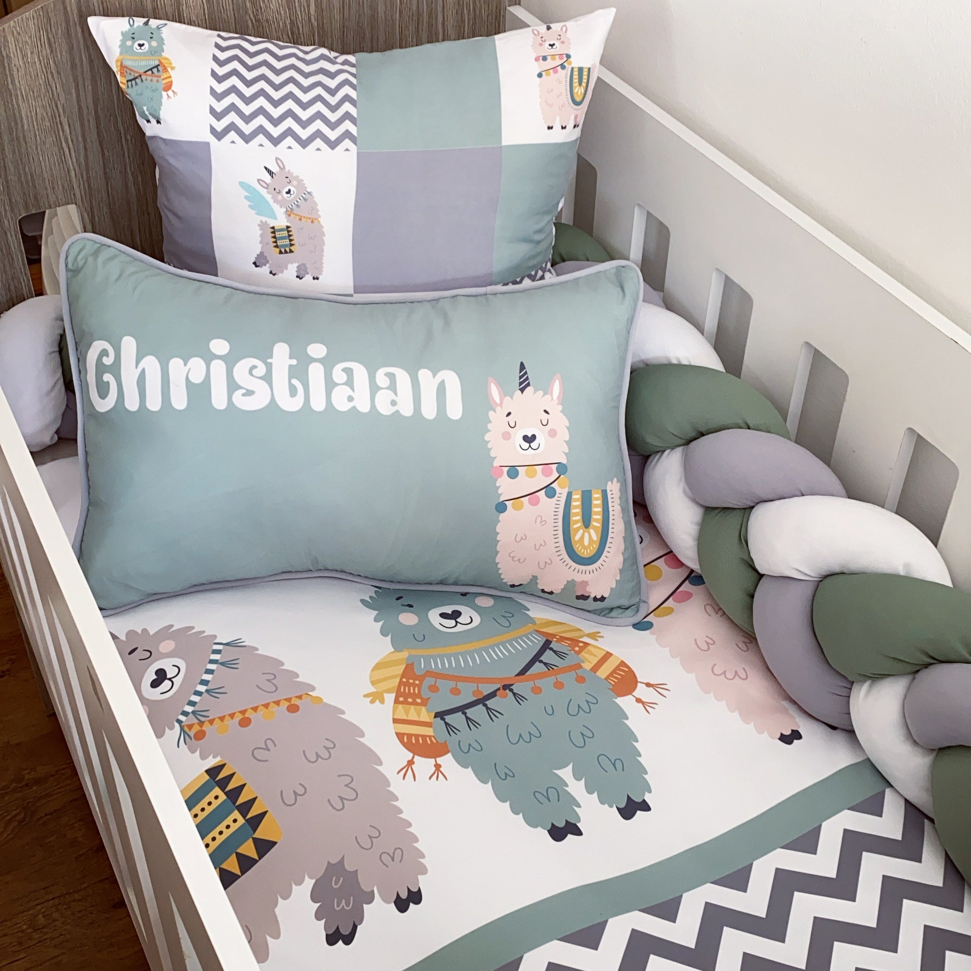 Cot Bedding - Sage Llama Set 01