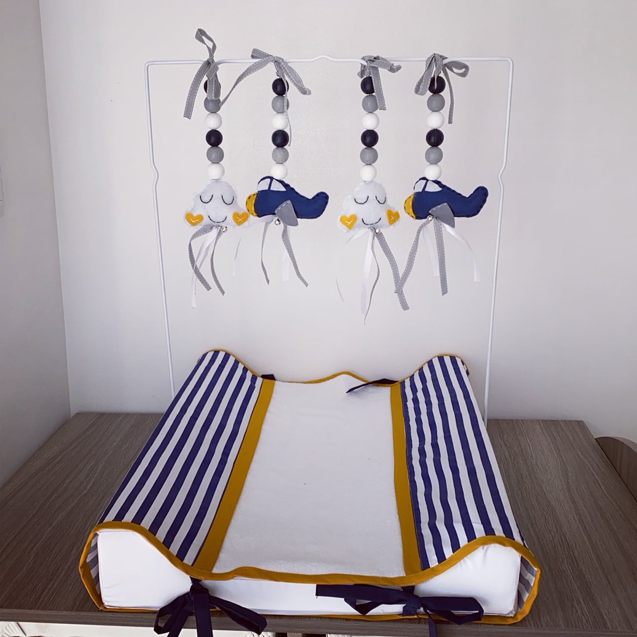 The Nursery Set: Standard Duvet Cover & Inner (80 x 110cm) | 2,5m Braided Bumper | Cot Pillow Cover & Inner | Scatter Cover & Inner | Name Pillow Cover & Inner | Change Mat Cover & Inner | Steel Frame or Wooden Frame | Set of 4 Dangles | White Fitted Sheet