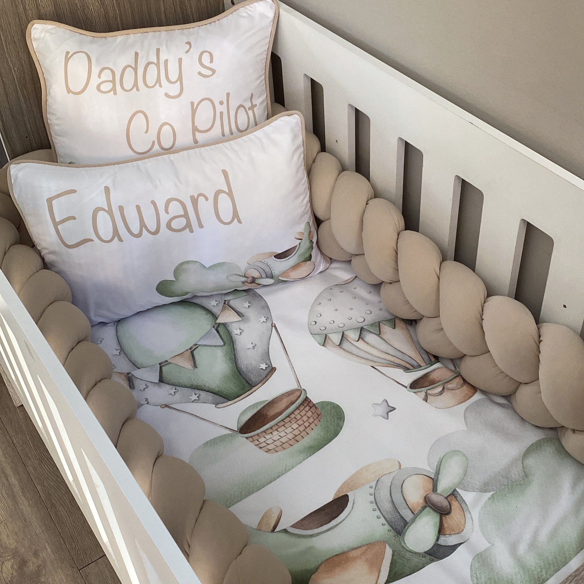 The Standard Set: Standard Duvet Cover & Inner (80 x 110cm) | 2,5m Braided Bumper | Cot Pillow Cover & Inner | Scatter Cover & Inner | Name Pillow Cover & Inner | White Fitted Sheet