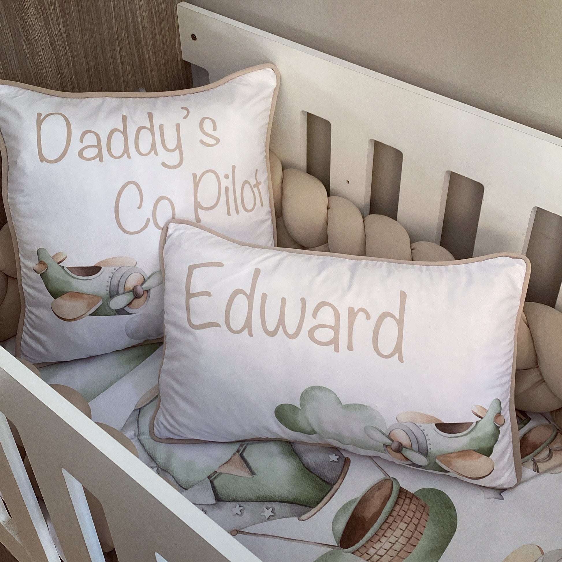 The Co-Sleeper Cot Set: 2 x Fitted Sheets (1 x Plain & 1 x Printed) | Blanket 70 x 100cm | Cot Pillow Cover 7 Inner | Small Name Pillow Cover & Inner