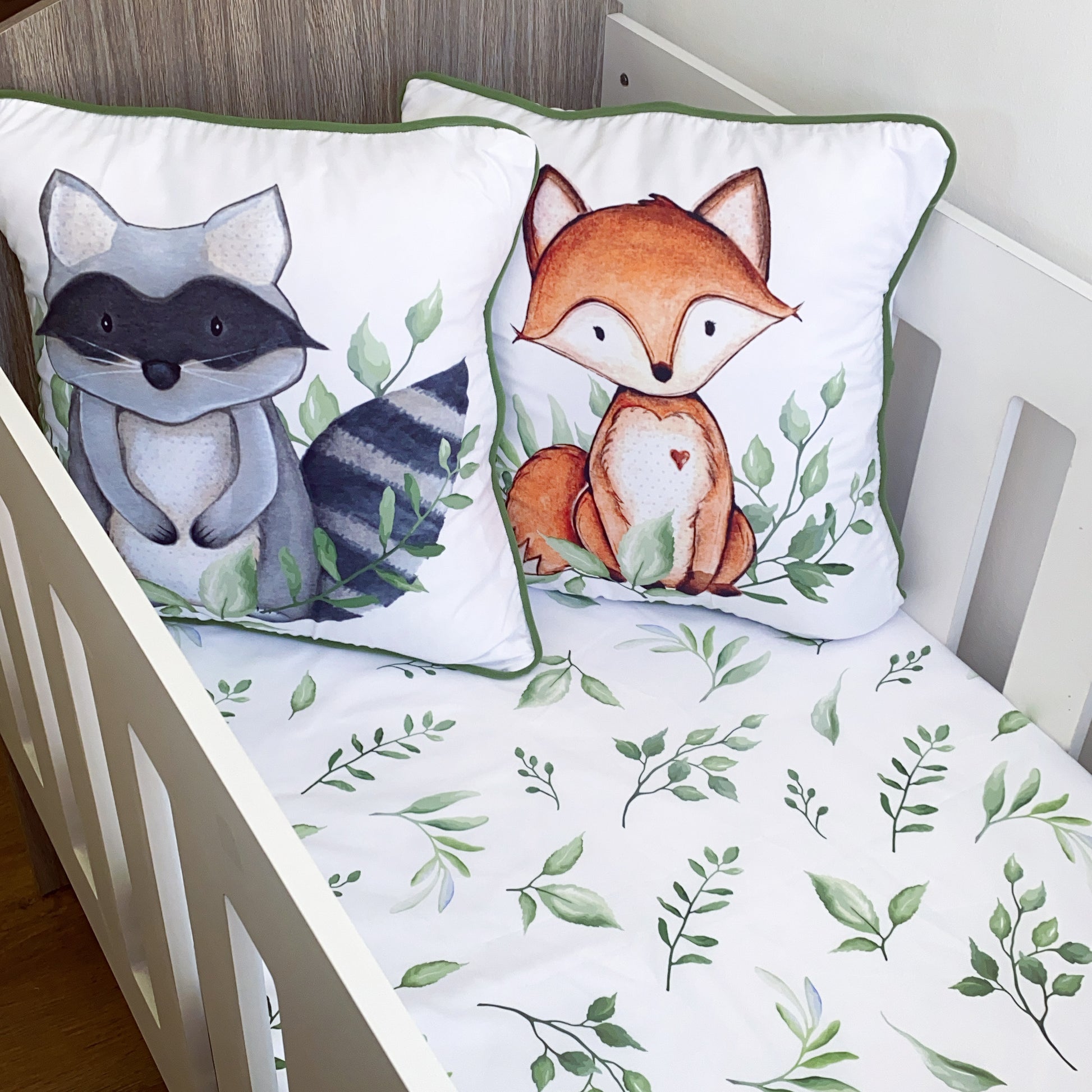 The Camping Cot Set: Standard Duvet Cover & Inner (80 x 110cm) | Cot Pillow Cover & Inner | Scatter Cover & Inner | Name Pillow Cover & Inner | White Fitted Sheet