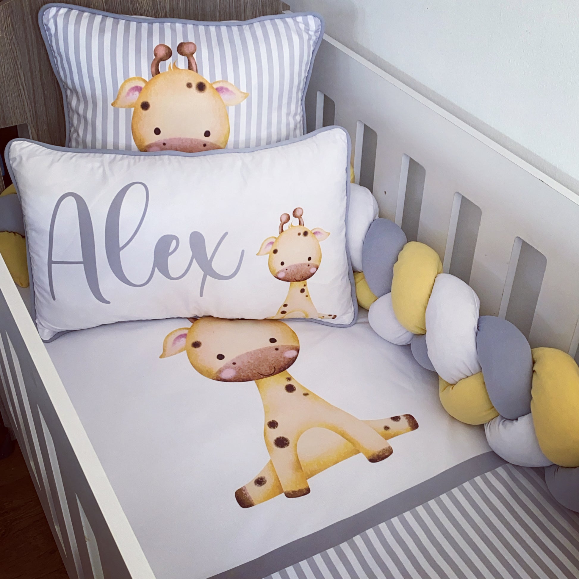 Cot Bedding - Yellow Grey Giraffe Set 01