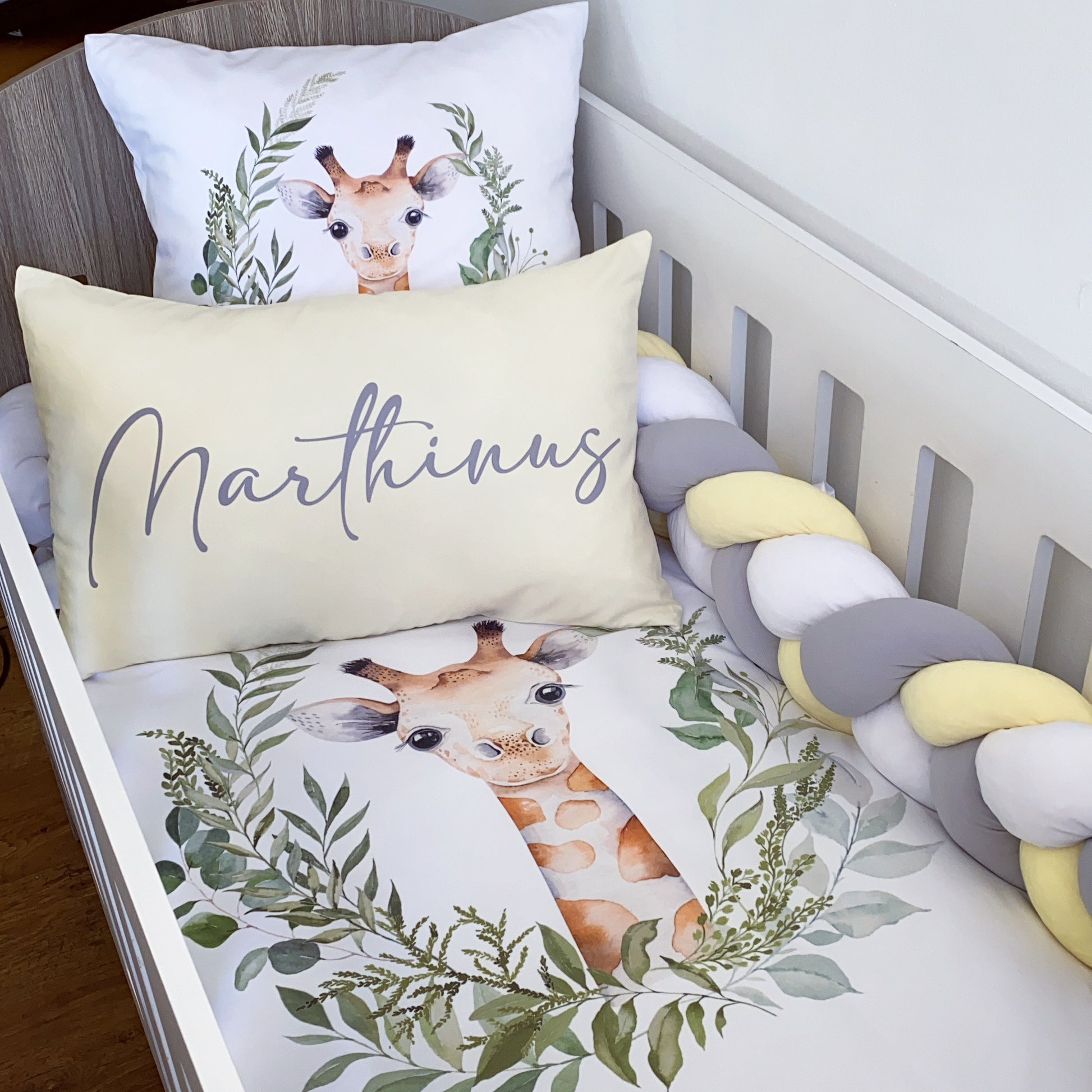 The Standard Set: Standard Duvet Cover & Inner (80 x 110cm) | 2,5m Braided Bumper | Cot Pillow Cover & Inner | Scatter Cover & Inner | Name Pillow Cover & Inner | White Fitted Sheet