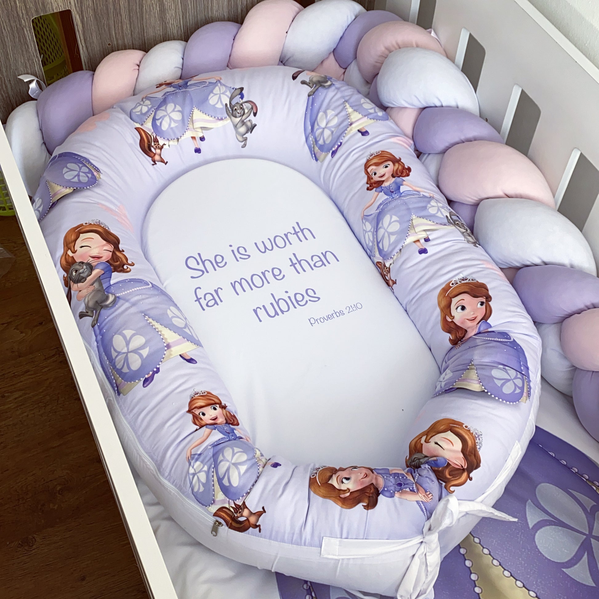 The Co-Sleeper Cot Set: 2 x Fitted Sheets (1 x Plain & 1 x Printed) | Blanket 70 x 100cm | Cot Pillow Cover 7 Inner | Small Name Pillow Cover & Inner