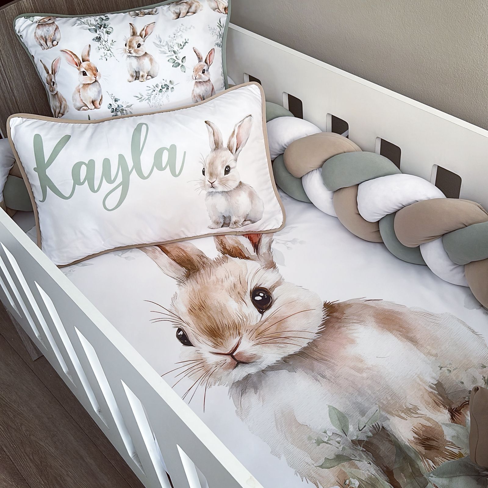 The Standard Set: Standard Duvet Cover & Inner (80 x 110cm) | 2,5m Braided Bumper | Cot Pillow Cover & Inner | Scatter Cover & Inner | Name Pillow Cover & Inner | White Fitted Sheet