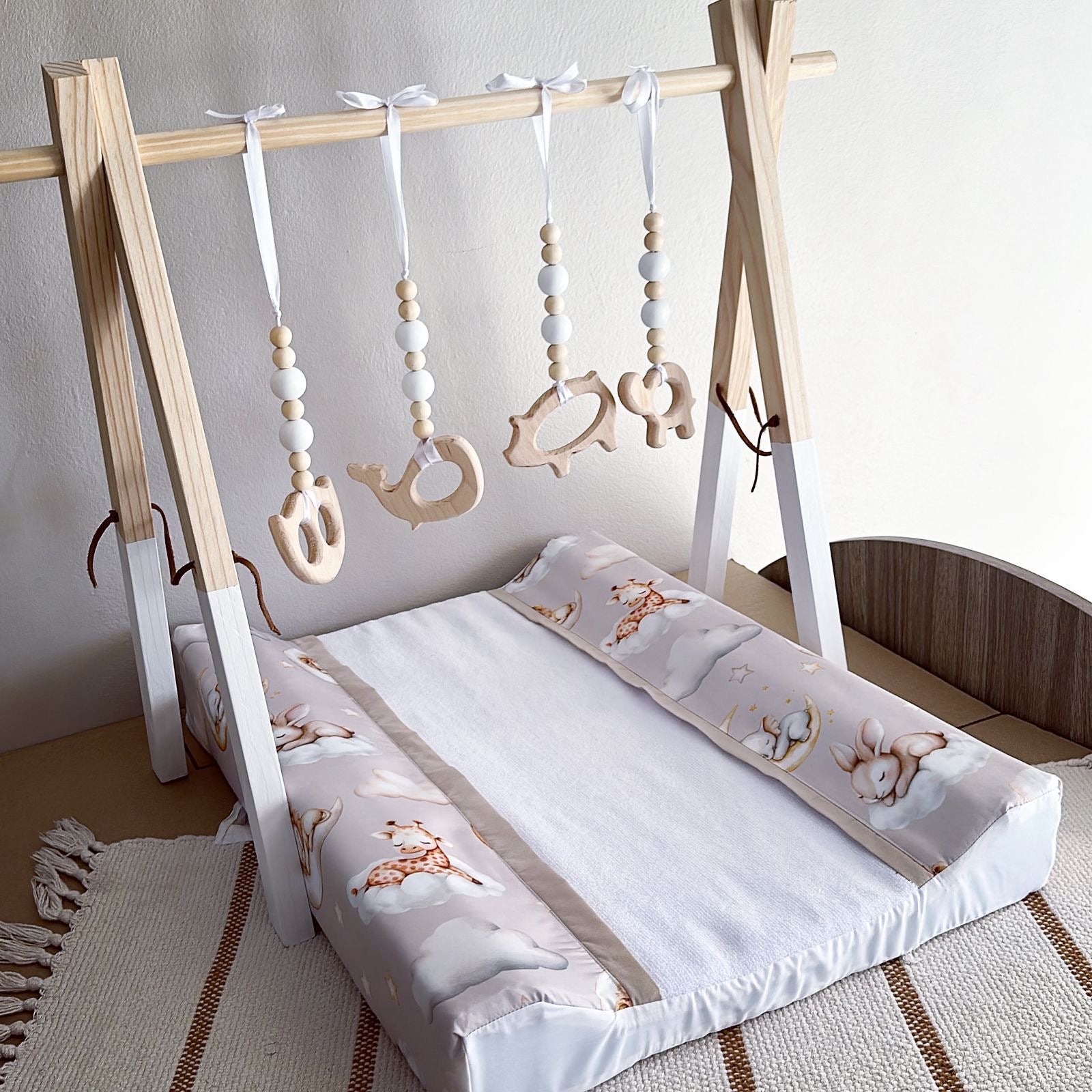 The Nursery Set: Standard Duvet Cover & Inner (80 x 110cm) | 2,5m Braided Bumper | Cot Pillow Cover & Inner | Scatter Cover & Inner | Name Pillow Cover & Inner | Change Mat Cover & Inner | Steel Frame or Wooden Frame | Set of 4 Dangles | White Fitted Sheet